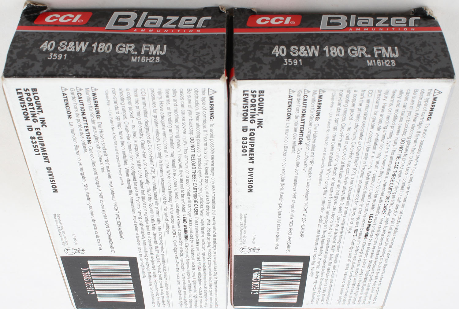 | CCI, Lot of (2), Blazer, .40 Smith & Wesson, 180 Grain FMJ, Ful...