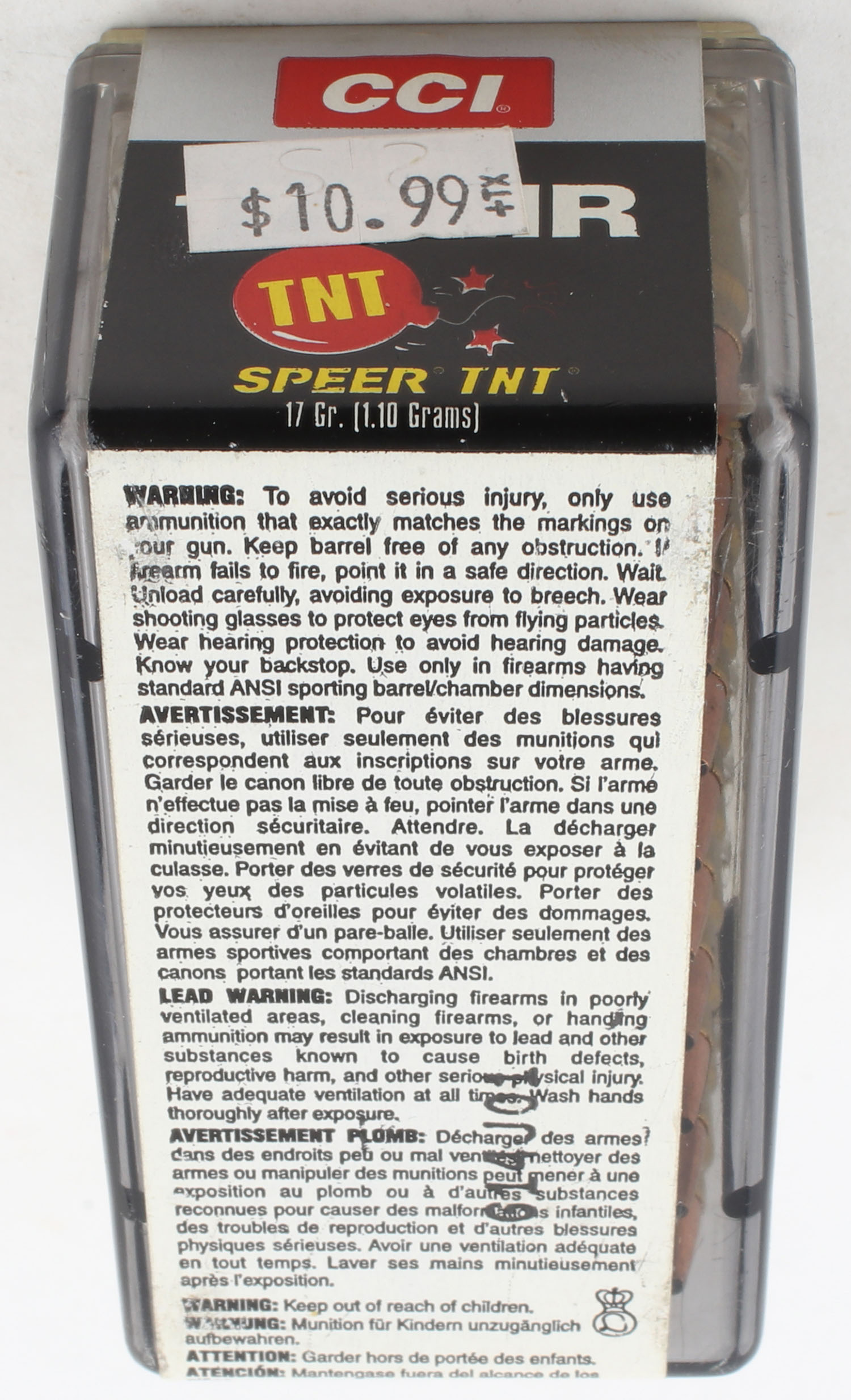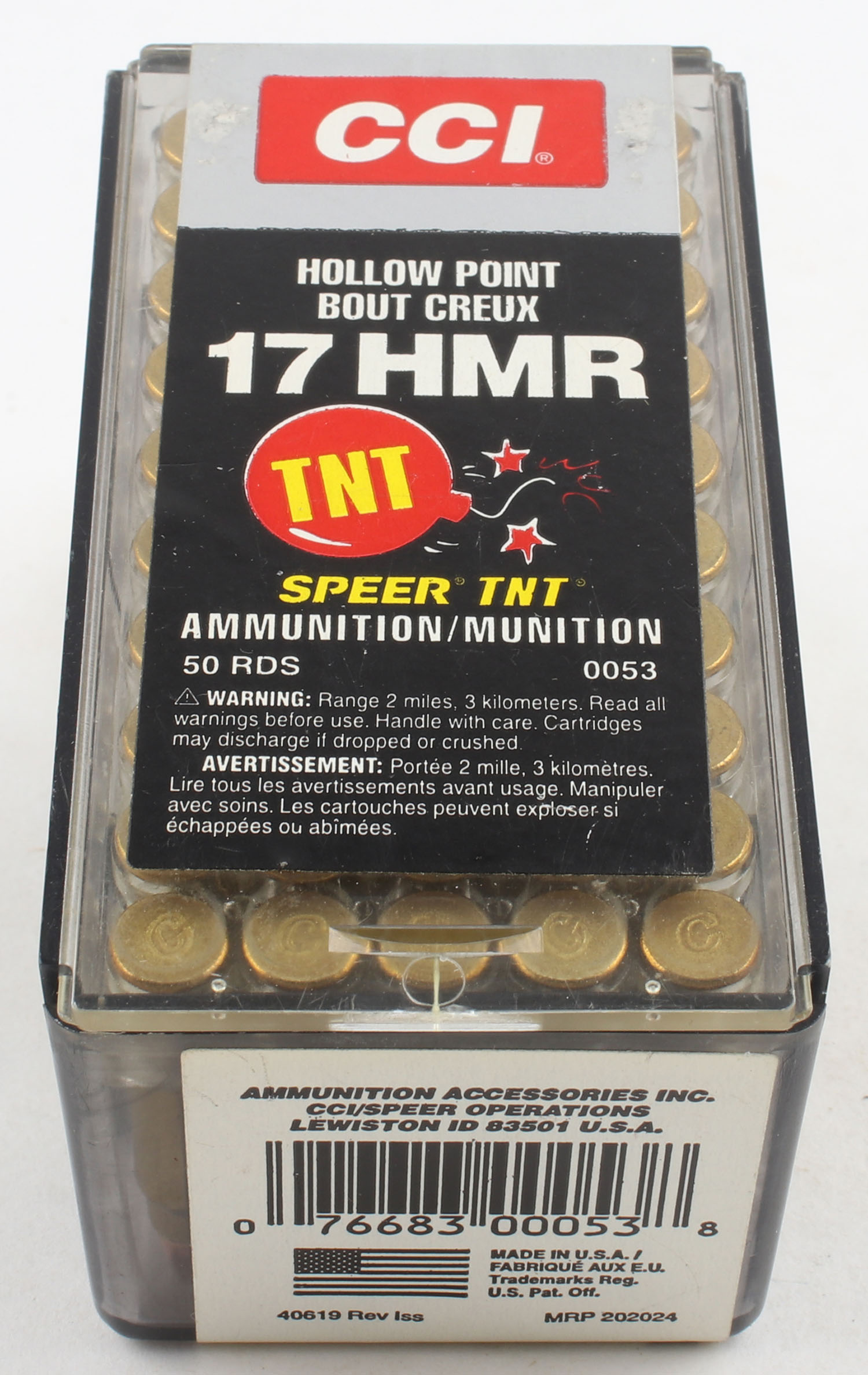 CCI, .17 HMR, 17 Grain Hollow Point, Full & Sealed, 1pc. Multi-colored box, box is very solid, ammo appears minty. Grade: Excellent ++ - Value: 10 to 20