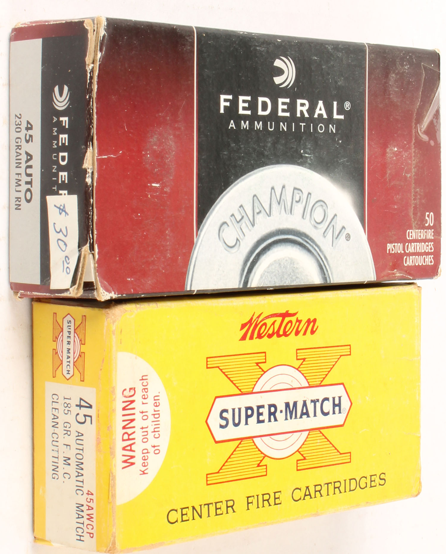 Mixed Mfg., Lot of (2), .45 Auto., Both boxes appear partial, boxes are solid, ammo is very good. Grade: Very Good - Value: 10 to 40