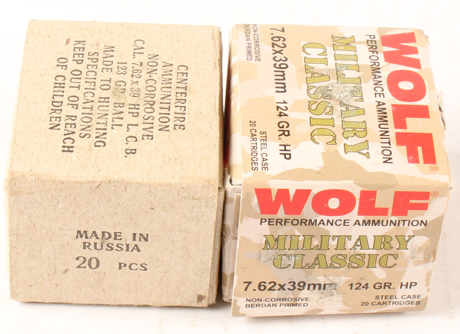| Mixed Mfg., Lot of (2), 7.62 x 39mm, both boxes are Full, boxes ...