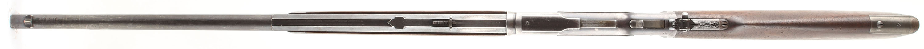 Winchester Model 1873, 3rd Variation, 38 WCF CAL., MFG: 1887, SN: 249034B, Lever Action Rifle, Rare Special order 24 1/4'' 1/2 Octagon 1/2 Round barrel, Full Mag. The original wood stocks are excellent. The stocks have several minor scratches, scrapes & contusions to the very nice original finish. The original metal blue finish rates 40% on the barrel & mag. 30% on the receiver, with the balance worn gun metal gray. Some very muted case-colors remain on the case-hardened lever & hammer. Bore is very good, with spots of cleaned roughness amongst very strong rifling. The receiver is fitted with a Lyman flip-up tang sight, while the barrel carries the original adjustable rear & silver pinched blade front sights. Buttstock carries a sliding trapdoor crescent metal buttplate. Plain trigger. A sharp presenting original special order antique 1873 rifle. Antique, NO FFL Req. - Value: 3500 to 4500