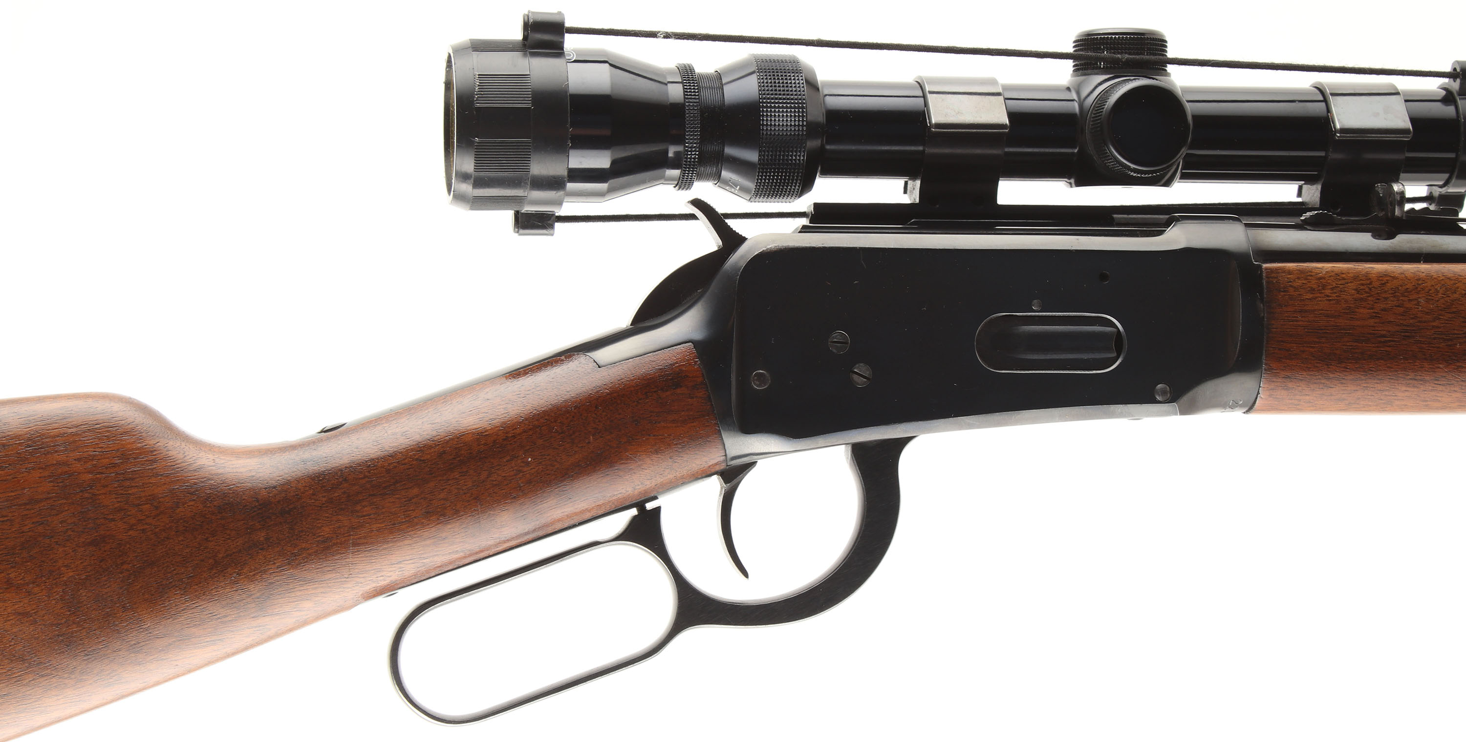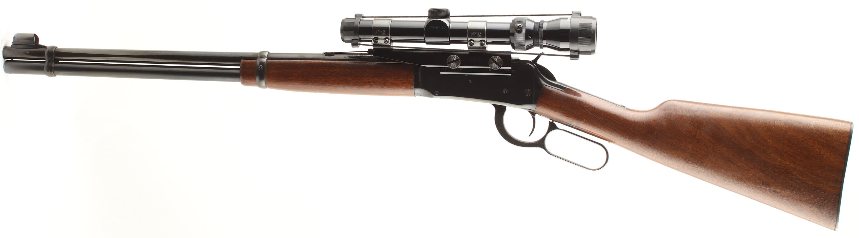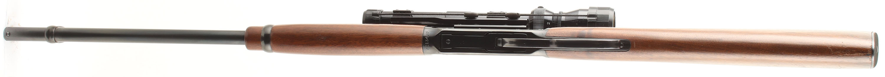 Winchester, Model 94 Carbine, CAL: 30-30 (30 WCF), MFG: 1956, SN: 2213432, Lever Action Carbine, 20'' Round barrel, Full mag. The straight grip wood stocks are excellent & solid, with a few minor handling marks to the excellent original finish. There is a longer surface scratch to the right side of the stock. The original metal blue finish rates 90% overall. Bore is excellent. The receiver is fitted with a side mounted Tasco 1.75-5X20 scope on Weaver mounts, while the barrel is fitted with an adjustable rear sight & a ramped hooded blade front sight. The left side of the receiver carries the two hole factory provision for receiver side mounted sights, which became standard after 1952. Stock carries a checkered metal shotgun style buttplate. Smooth tight action. A solid & high original condition 30-30 carbine setup ready for the hunt. FFL or C&R Req. - Value: 600 to 1200