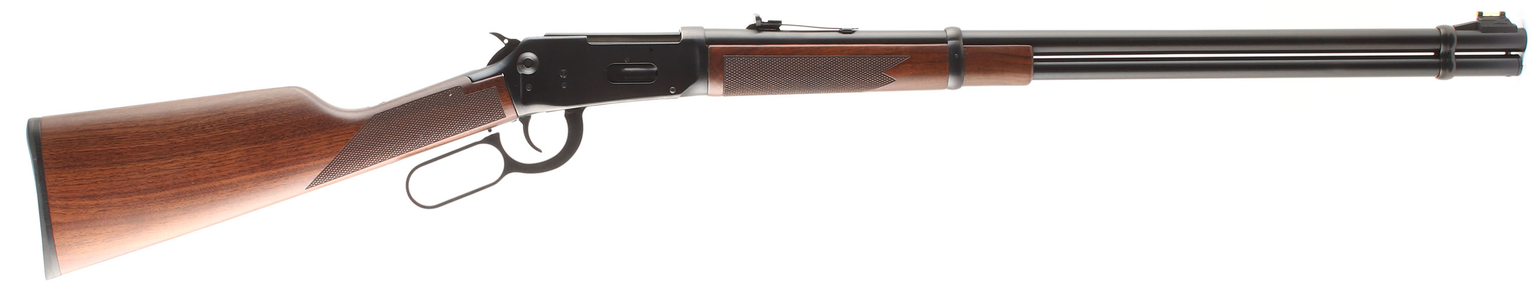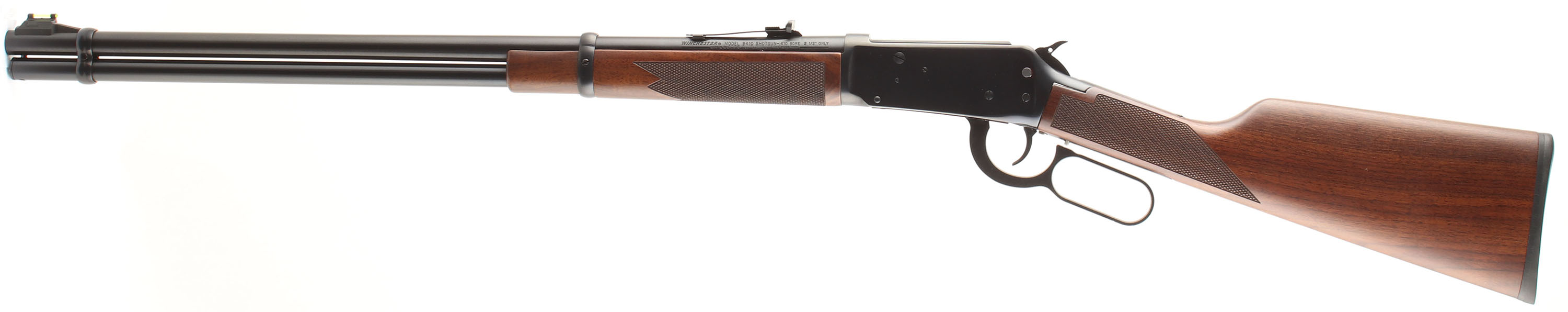 Winchester Model 9410 Shotgun, CAL: 410 ga (2 1/2'' only), MFG: Modern, SN: SG13556, Lever Action Rifle/shotgun, 24'' Round barrel, Full mag. The original checkered & straight grip wood stocks are excellent, with virtually no handling marks to the excellent original finish. The original metal blue finish rates 99%. Bore is excellent. Barrel holds an adjustable rear elevator sight & elongated green fiber optic blade front sight. Buttstock carries a hard rubber buttplate. This firearm is almost new, but without the box. FFL Req. - Value: 1000 to 1500