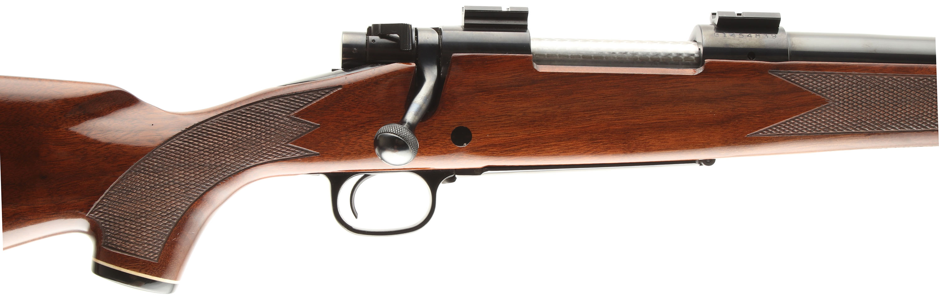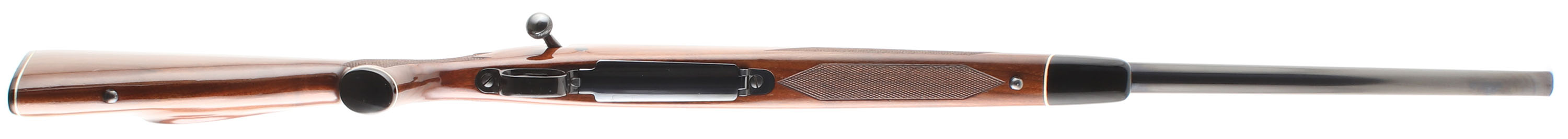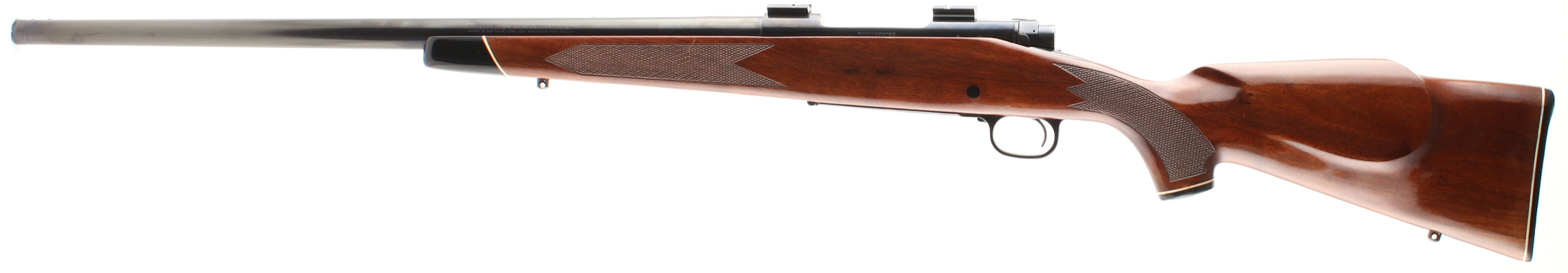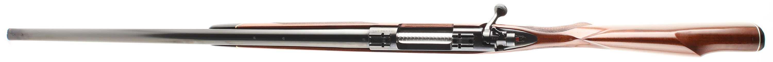 Winchester, Model 70 XTR, CAL: marked 222 REM, MFG. 1980, SN: G1454839, 24'' Round tapered barrel. The factory checkered & capped pistol grip wood stock is excellent, with few minor handling marks to the excellent high gloss original finish. Ebony forend tip & pistol grip cap. The metal blue finishes rate 98% overall, 90% on the floorplate due to some minor scratches or abrasions. Bore is excellent & bright. The receiver has two scope block ready for scope mounting, while the barrel has screw filled provisions for open sights. The stock carries the original checkered plastic buttplate. Sling studs. Jeweled bolt. An excellent & original model 70 XTR. FFL Req. - Value: 800 to 1200