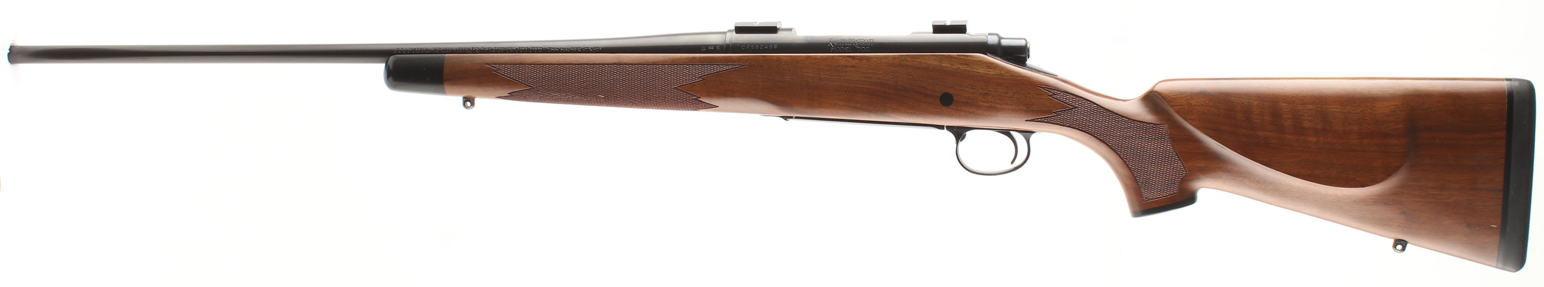 Remington, Model 700, CAL: 7MM MAUSER (7x57), MFG:1990, SN: C6552498, Bolt Action Rifle, 22'' round barrel, The original cheeked, hand checkered & capped pistol grip wood stock is excellent, with very few tiny handling marks to the original excellent finish. The stock carries an ebony toned forend tip & pistol grip cap. The original metal blue finish rates 98% overall, with minor scratches to the trigger guard. Bore is excellent. The receiver holds scope blocks for future scope mounting, while the barrel carries no factory provisions for open sights. Stock carries a Remington solid recoil pad. Jeweled Bolt. Sling studs. An overall excellent & original condition bolt rifle. FFL Req. - Value: 600 to 1000