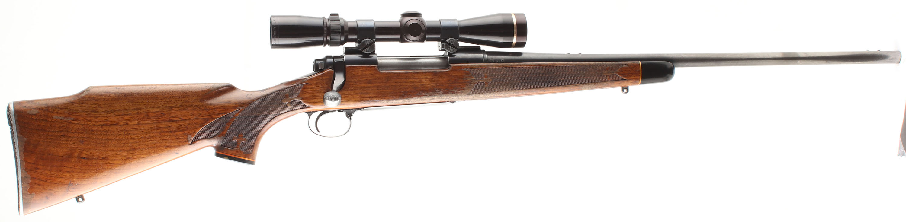 Remington, Model 700, CAL: CAL: 30-06 SPRG, MFG:1965, SN: 175249, Bolt Action Rifle, 22'' round barrel, The original cheeked, hand checkered & capped pistol grip Monte Carlo style wood stock is very good. There minor scratches & light contusions to the wood & original finish, with also has lots of finish level scrapes, areas of flaking or chipping, & is worn thin or lost in areas. The stock carries an ebony toned forend tip & pistol grip cap. The original metal blue finish rates 80% on the receiver, 40%on barrel, with the floorplate & trigger guard worn mostly gun metal gray. Bore is very good. The receiver holds a Leupold VARI-X III 2.5X8 scope, with caps, while the barrel carries screw filled factory provisions for open sights. Stock carries the original metal buttplate. Sling studs. A solid vintage hunting rifle, with scope. FFL or C&R Req. - Value: 400 to 750