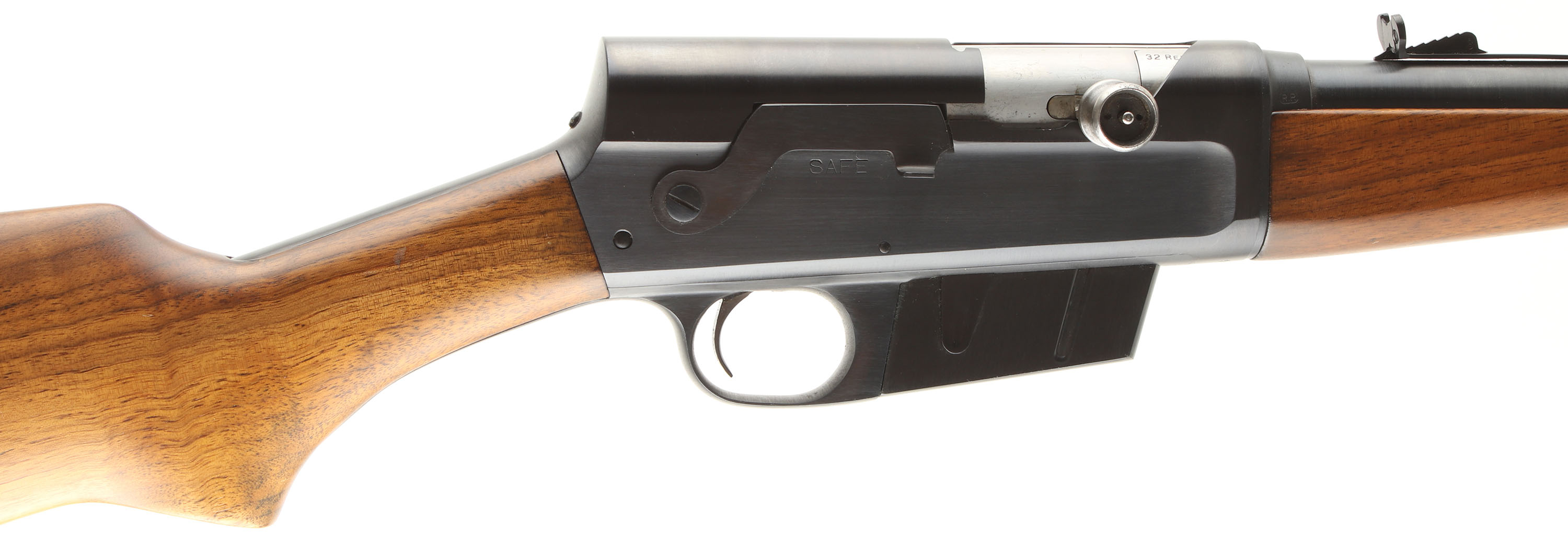 Remington, Model 8, 32 REM CAL, MFG. 1929, SN 60355, Semi-Auto Rifle, 22'' barrel. This rifle has been professionally restored. The straight grip stocks are most often found in the early years, with the round knob becoming more in vogue in the 1910-20's & finally the flat knobs becoming popular in the late 20's & early 30's. This original flat knob pistol gripped rifle has excellent stocks, as expertly cleaned & refinished. There remains virtually no handling marks to the excellent finish, which shows of the woods grain. The restored metal blue finish rates 99%, showing some polishing lines & original stampings. The barrel is fitted with standard adjustable rear sight & a ''00'' front sight. Bore is excellent, bright & clean. Stock carries the popular serrated, bottom tang Remington crescent metal buttplate. 5 rd fixed magazine. A sharp looking & excellent restored condition flat knob rifle. FFL or C&R Req. - Value: 800 to 1250