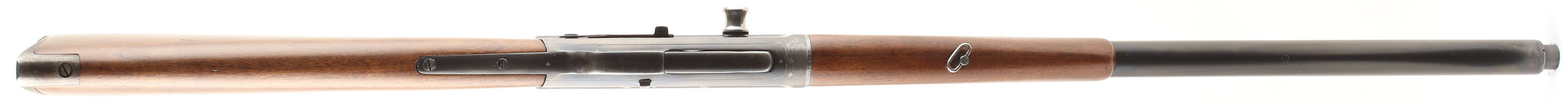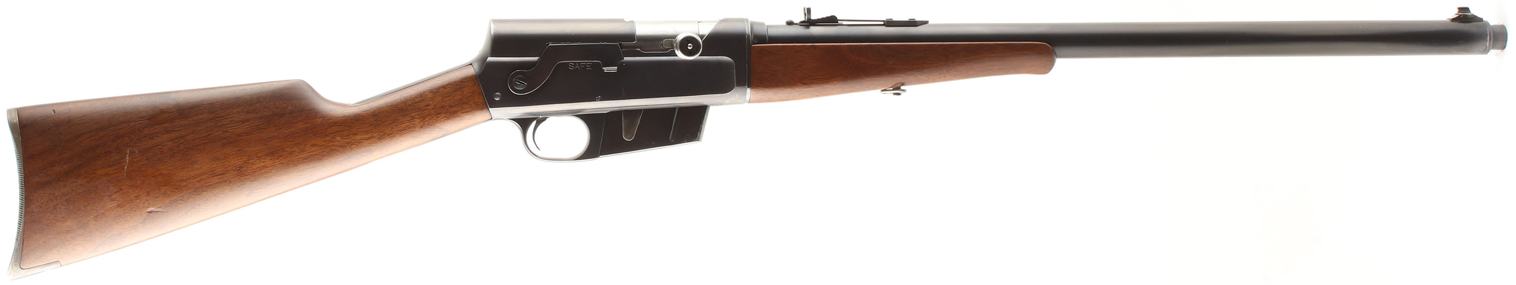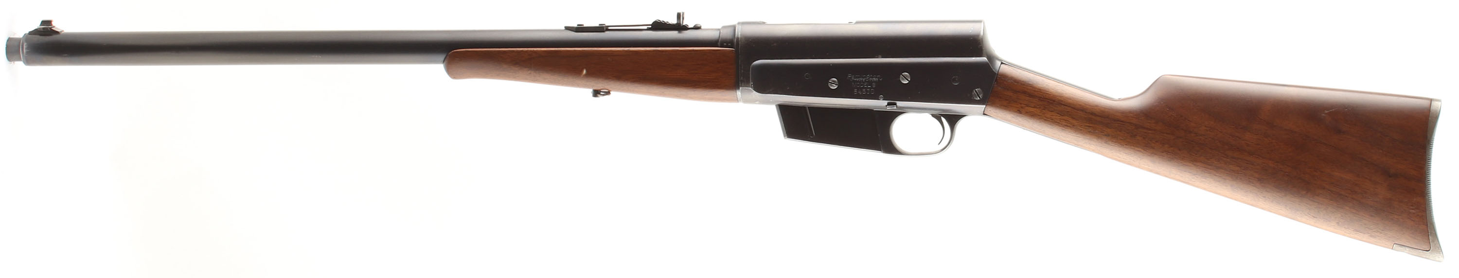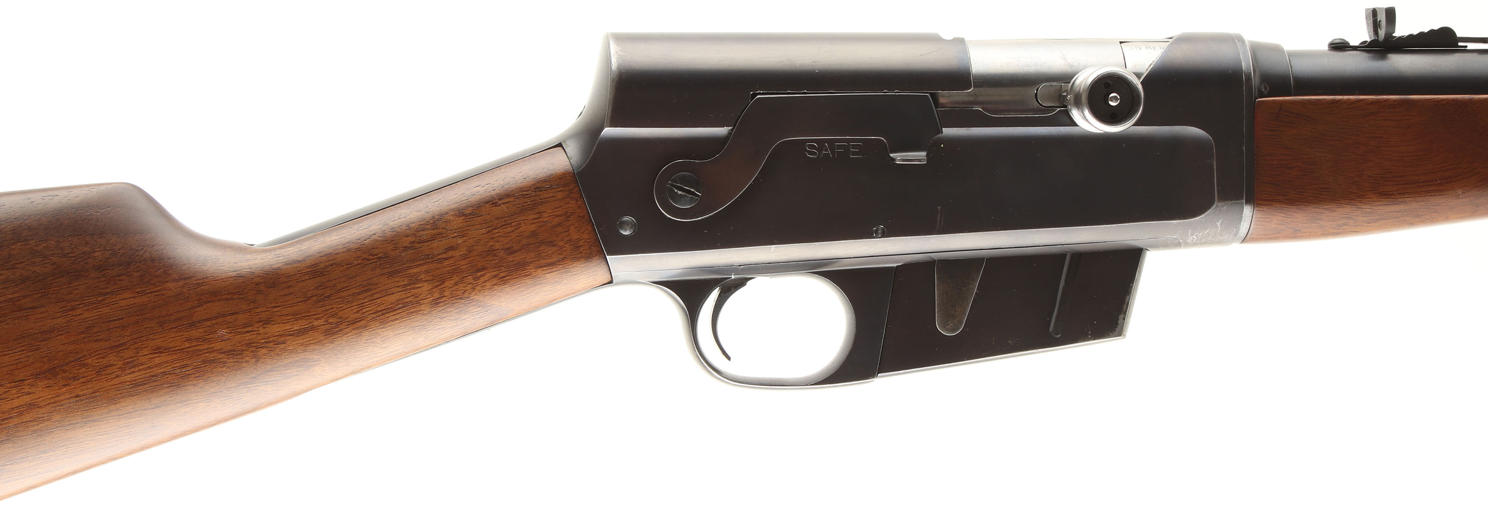 Remington, Model 8, .35 Rem Cal, MFG. 1931, SN: 64570, Semi-Auto Rifle, 22'' barrel. The original straight grip & schnabel forend stocks are excellent, having been cleaned, lightly sanded & very nicely refinished. There are very few minor scratches & contusions since the refinish & the finish remains excellent. The original metal blue finish rates 75% overall, with even wear loss or thinning from honest use. Bore is excellent, bright & clean. The barrel carries a standard adjustable rear & blade front sights. The stock carries a serrated & bottom tang, crescent metal buttplate. 4 round fixed magazine. Tight action. An overall very nice looking & high condition rifle. FFL or C&R Req. - Value: 600 to 1000