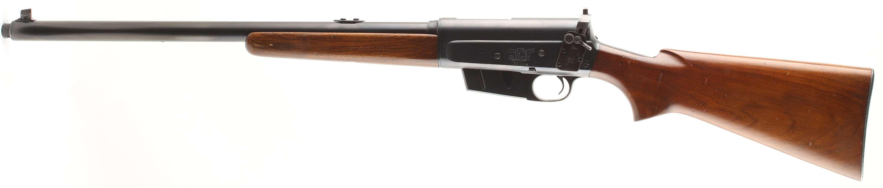 RARE Remington, Model 81 F.B.I. Rifle, .30 Rem Cal, MFG. 1942, SN: 19011, Semi-Auto Rifle, 22'' barrel. In mid 1938, Remington & the Federal Bureau of Investigation worked together to develop a replacement for the Winchester Model 1907s, which were then in service. The FBI had become dissatisfied with the .351 Self-Loaders & sought Remington to come up with an alternative service rifle that could produce similar ballistics, but function more reliably. The Model 81 FBI rifle was Remington's answer. An excellent history & production development of these rifles can be found in John Henwood's ''The Great Remington 8 & Model 81 Autoloading Rifles''. The FBI rifles, in actuality, was only a slightly modified version of Remington's production Model 81 rifle. Aesthetically, most would not notice the subtle differences that were made to the guns to meet the FBI requirements. That is why many a hunter or gun trader has owned, used & traded one of these rifles without knowing they had a surplused FBI rifle. There were actually two variations, the first more easily distinguishable, the later more closely related to a standard 81. Of the early type, the most prominent features are the unique receiver markings & the Lyman 41R receiver sight. Please take note that the Early-Type comes in two configurations. One was manufactured without rear sight provisions altogether, only a smooth barrel jacket. Another configuration was manufactured with rear sight holes & a factory installed Lyman #12 rear sight-blank.