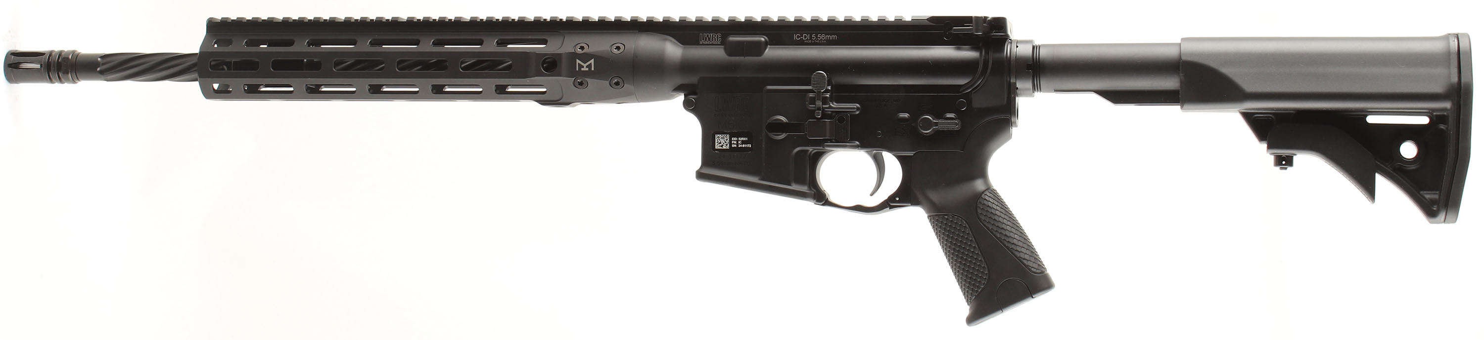 LWRC, M61C (AR-15), CAL: 556 NATO/223 Rem, MFG: Modern. SN: 24-81172, Semi Auto Rifle, 16'' Barrel. The factory plastic furniture & aluminum handguard are excellent with minimal wear. The anodized finish on the gun is excellent with minimal wear. Bore is excellent, bright with strong rifling. Mechanically solid, seems to function well. No magazine. FFL Req. - Value: 1000 to 1500