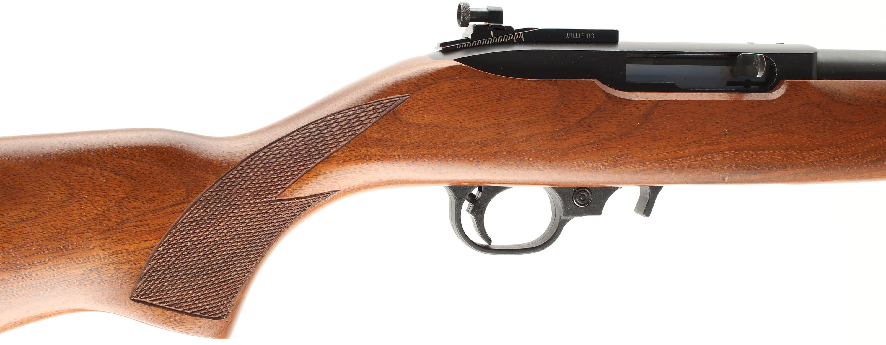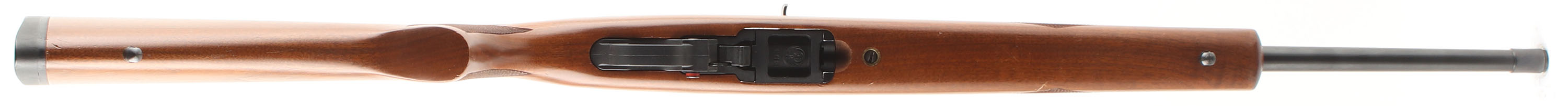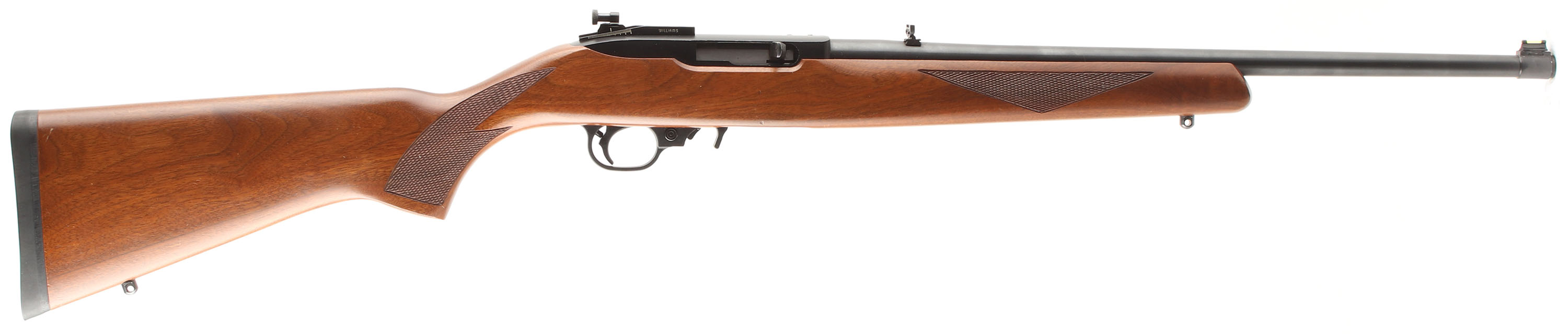 Ruger, Model 10/22 SP, CAL: 22 LR, MFG: 1993, SN: 237-52594, Semi Auto Rifle, 18 1/2'' barrel. The original checkered & flat pistol grip wood stock is excellent, with a few tiny to minor scrapes, scratches & contusions to the excellent original finish. The original metal blue finishes rates 98%. Bore is excellent & bright. The rifle is mounted with a Williams aperture disk receiver sight, while the barrel holds a standard folding leaf rear sight & green fiber optic rod front sight. Stock carries a Ruger solid black rubber recoil pad. Sling studs. Detachable mag. Excellent overall. FFL Req. - Value: 300 to 450