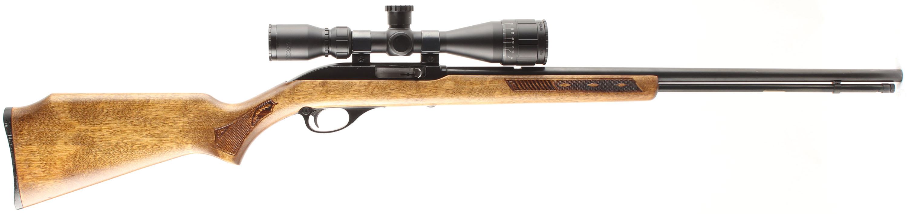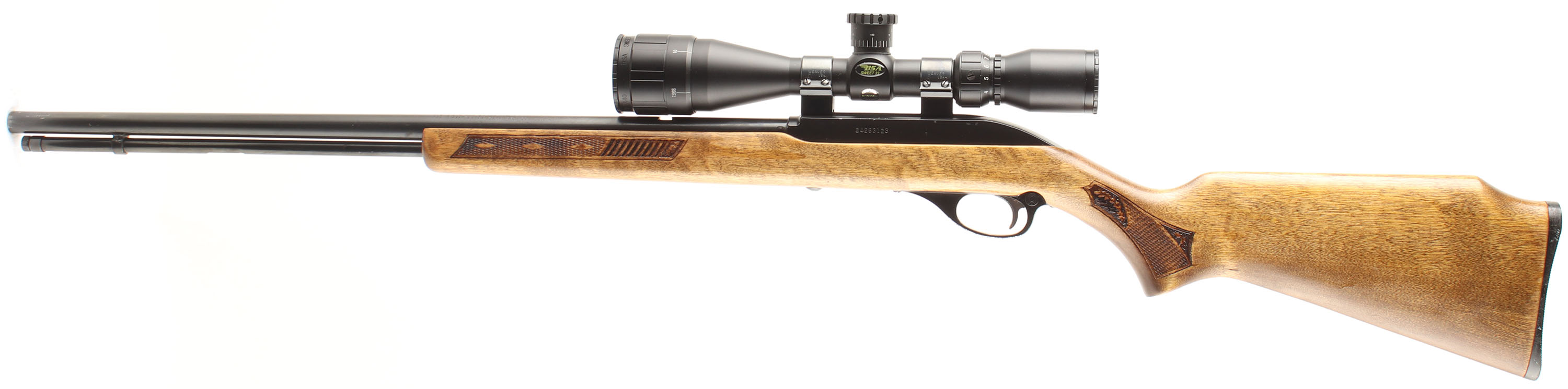 Marlin, Model Glenfield 60, CAL: 22LR, MFG: 1976, SN: 24263123, Semi Auto Rifle, 22'' barrel. The original pressed checkered & flat pistol grip Monte Carlo stock is excellent, with a few minor handling marks to a combination of the original finish & an added layer of finish. The original metal blue finishes rates 95% overall. Bore is excellent & bright. The receiver carries a BSA Sweet 22 3-9X40 scope on Weaver mounts, while the barrel has an open rear dovetail & an open front sight provision hole. Stock carries a checkered plastic buttplate. 14 rnd tube mag. Excellent overall. FFL Req. - Value: 150 to 300