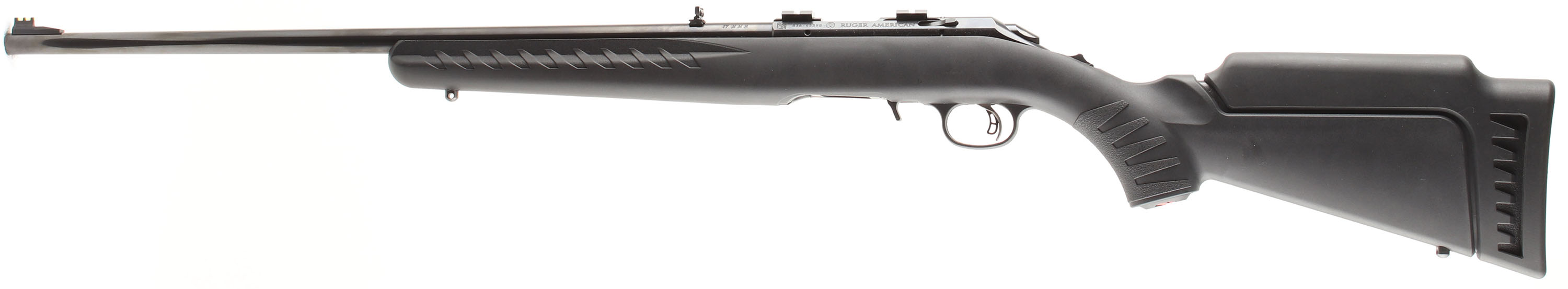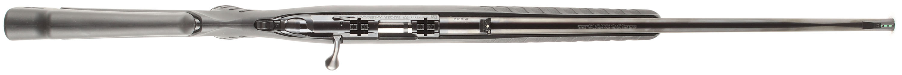 Ruger, Model American, CAL: .17 HMR, MFG: Modern, SN: 836-45398, Bolt Action Rifle, 22'' barrel. The factory capped pistol grip synthetic stock is excellent. The factory metal black finishes on the barrel & receiver rates 99%. Bore is excellent. Receiver carries scope blocks, while the barrel carries a folding leaf rear & ramped green fiber optic front sights. Solid buttend. Sling studs. Detachable Mag. FFL Req. - Value: 250 to 400