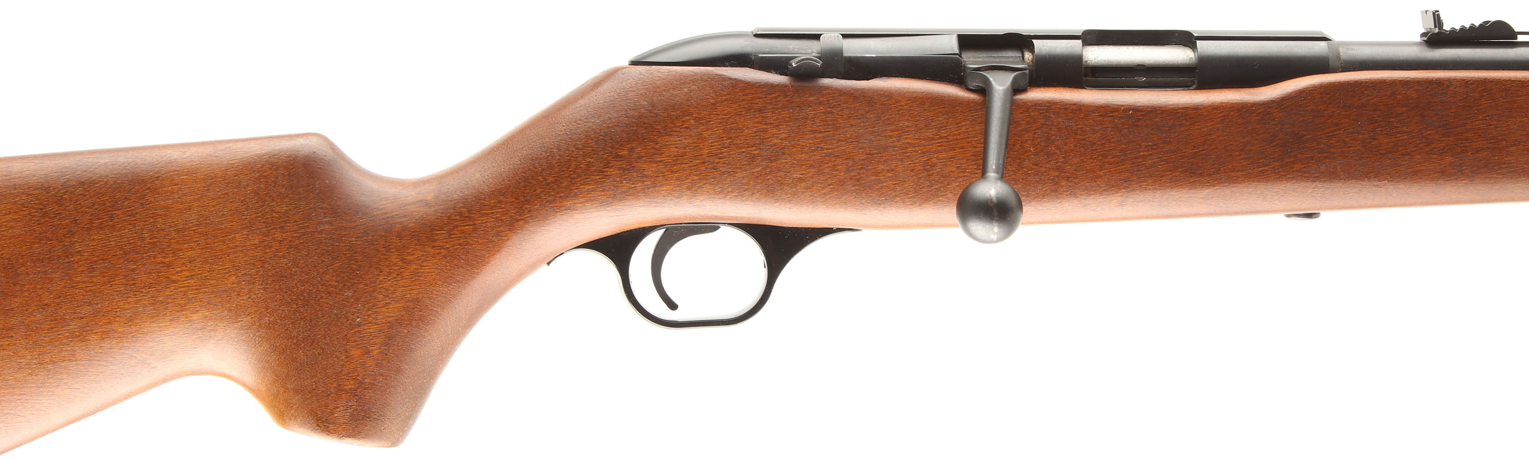 Western Field, Model M851 (Produced by Mossberg, similar to the Mod 320), S, L, LR Cal., MFG. 1960-66, SN: None, Bolt Action Rifle, 24'' round barrel, Grooved receiver. The factory flat pistol grip wood stock is excellent & solid, with very few minor handling marks or scuffs to the excellent original finish. Factory metal blue finish rates 95% overall. Bore is excellent, Mounted with original factory sights. Original black plastic buttplate. Overall excellent. FFL or C&R Req. - Value: 150 to 300