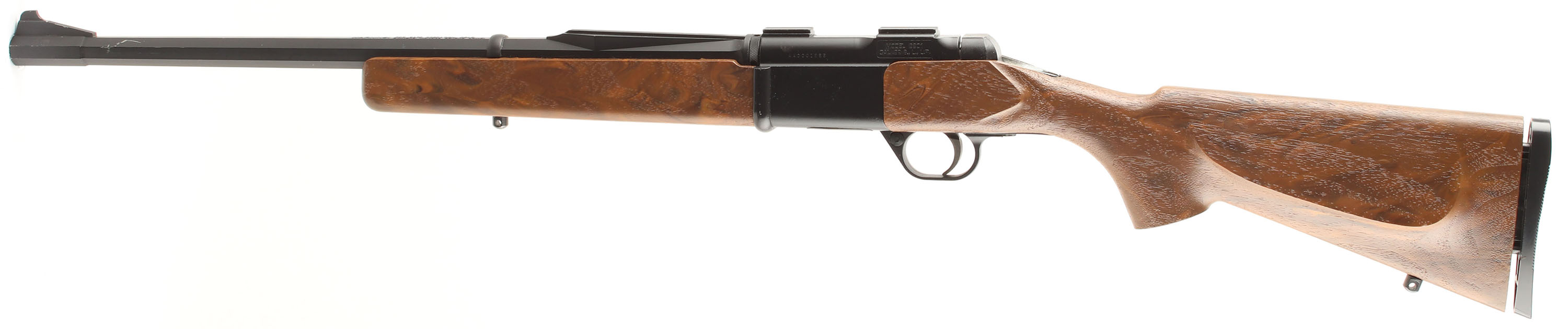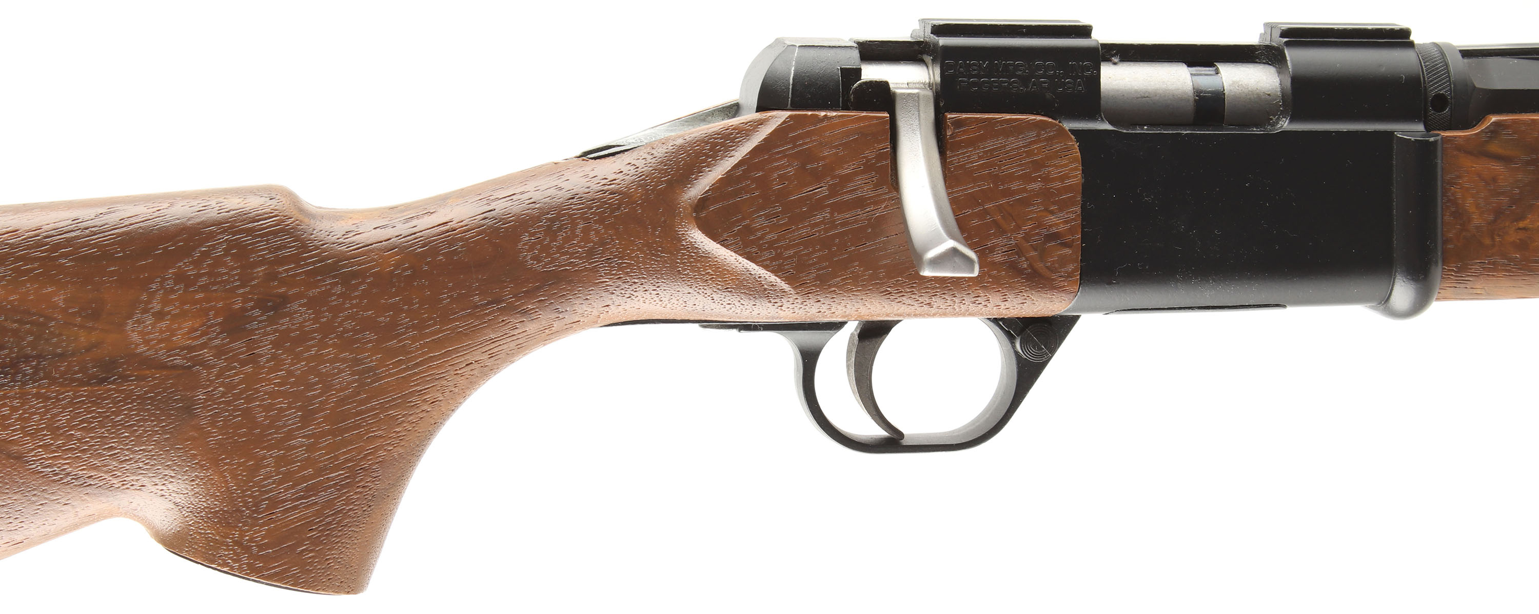 Daisy Legacy, Model 2201 Bolt Rifle, .22 S. L. LR. Cal. MFG: 1988-89, S/N: AAA0001222, 18'' Octagon barrel, These are fairly rare rifles as they were special production contract by Wal-Mart with Daisy for 30,000 rifles. Far fewer were actually produced & sold during the short 2 years they were offered. The aluminum frame of the rifle is marked ''Model 2201 CAL .22 S., L., L.R.'' on the left side & the right marked ''Daisy MFG. Co. Inc. Rogers, AR USA''. The original wood grain plastic stocks are excellent. The original metal black finishes are excellent. Bore is excellent. Factory sights. Sling studs. All appears to function well, as it looks to have been used very little & rates overall excellent. FFL Req. - Value: 200 to 400