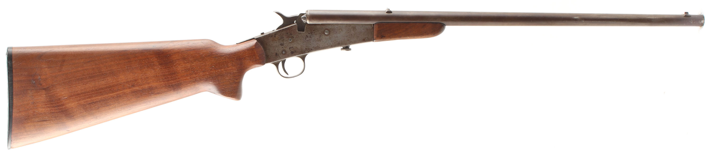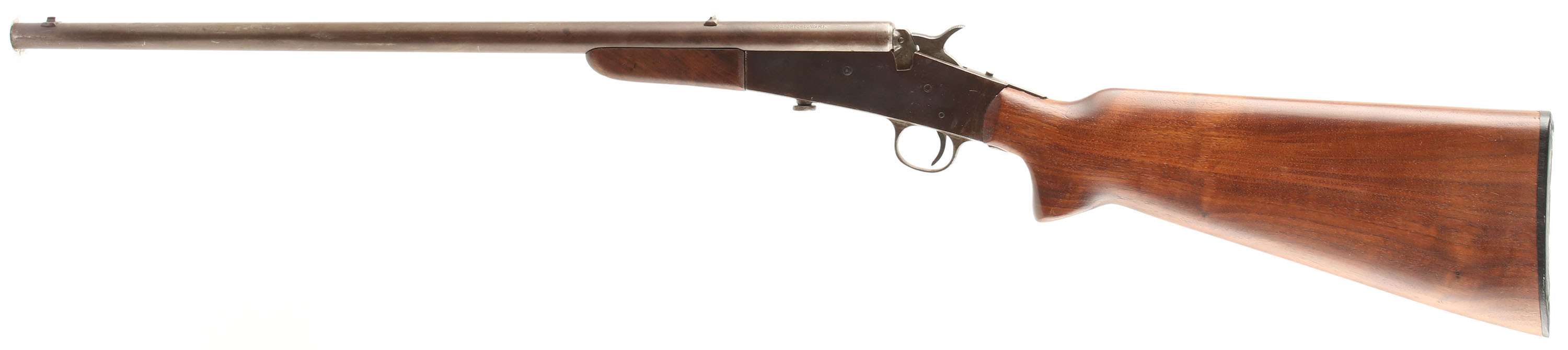 Remington, Model 6, Cal: .32 RF (Short or Long), MFG: 1901-33, S/N: 227067, Single Shot Rolling Block Rifle, 20'' barrel. The replaced wood stock & original forend are excellent, with light wear & excellent finish. The metal blue finish on the receiver has toned a gray/brown on the left, while it has worn mostly gun metal gray on the right, with a very thin brown patina. The barrel has worn gun metal gray, with a very thin brown patina. The bore is good, with some cleaned roughness amongst solid rifling. The barrel holds front & rear iron sights set in dovetail cuts. The stock carries a replaced FN black plastic buttplate. FFL or C&R Req. - Value: 150 to 300