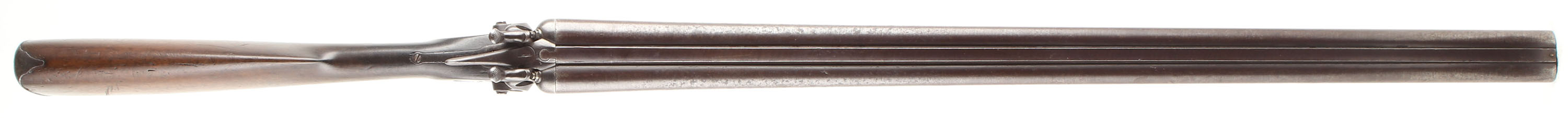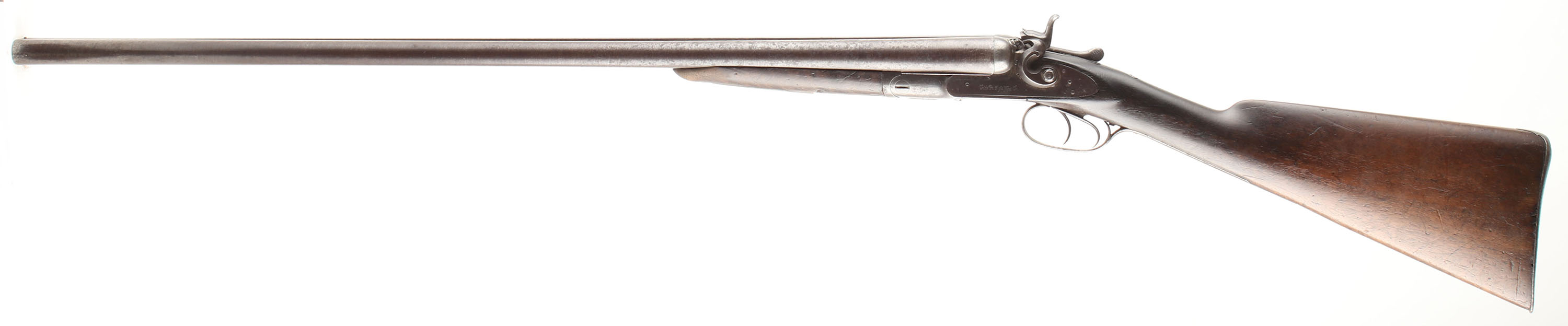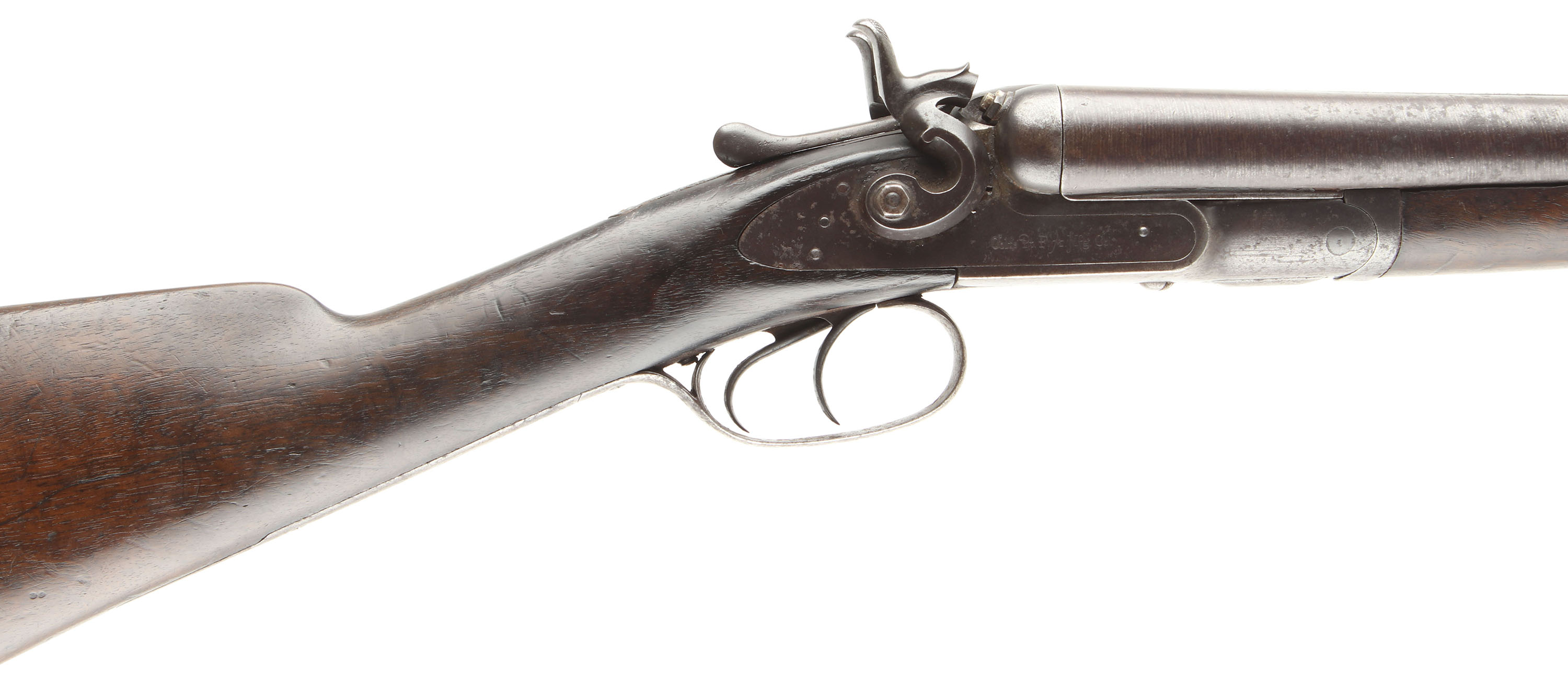 Colt, Model 1878, CAL: 12GA, MFG: 1878-89, SN: 21952, Break Action SxS, 30'' barrels. The side plates are marked ''COLTS PT F.A. MFG CO''. The original straight grip wood stocks are good & solid. There are minor edge chips along the buttplate, with numerous contusions, scratches & scrapes throughout. The forend has a couple good smoothed gouges. The laminated/twisted steel pattern on the barrels is visible, but the barrels have mostly toned to a dark brown patina, with consistent spotting & speckling. The side plates have also toned to a dark brown patina. Bores are fair, consistently rough, with pitting. The solid ribs holds a front bead. Stock has a smooth metal buttplate, with rust spotting/speckling. The break open is a little sticky, & is sometimes hard to open & there is a small amount of play between the barrels & receiver. Double triggers. The left hammer doesn't appear to hit the firing pin, it looks like it gets hung up on the sideplate screw just ahead of the hammer. Shotgun has some difficulties unlocking & opening. We recommend this firearm be inspected by a licensed gunsmith before use. SOLD AS IS NO RETURNS. Antique, No FFL Req. - Value: 300 to 600
