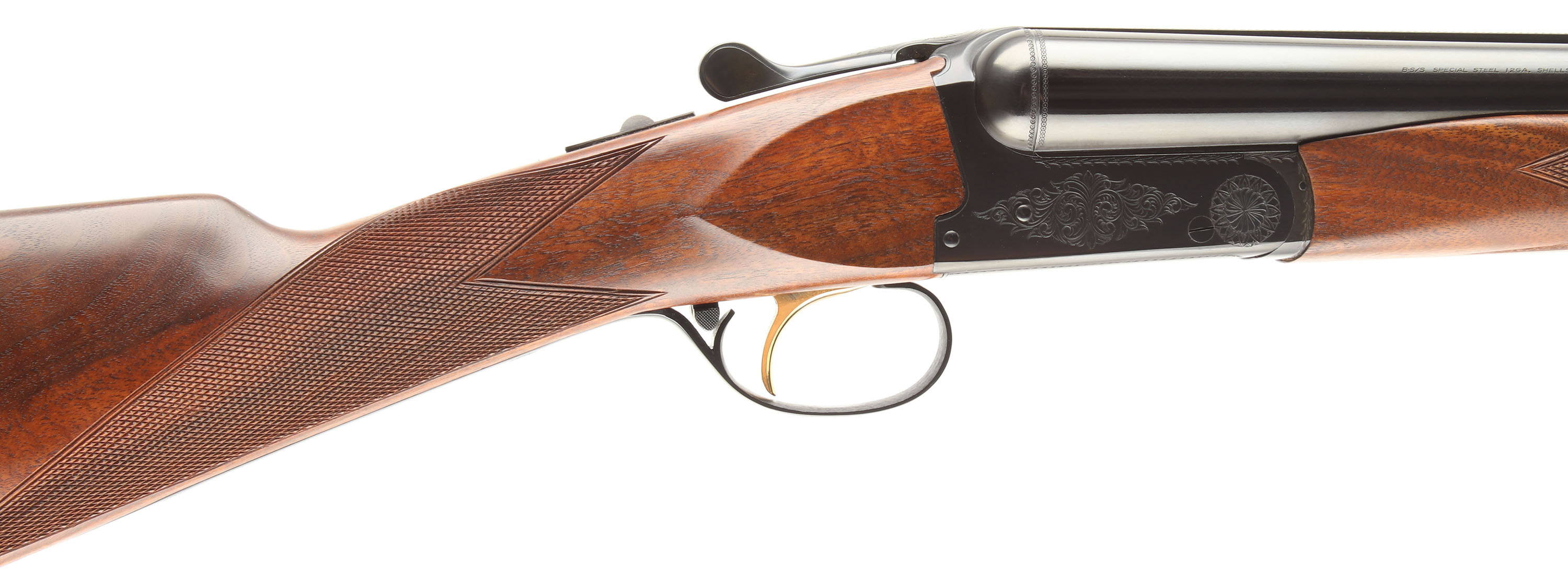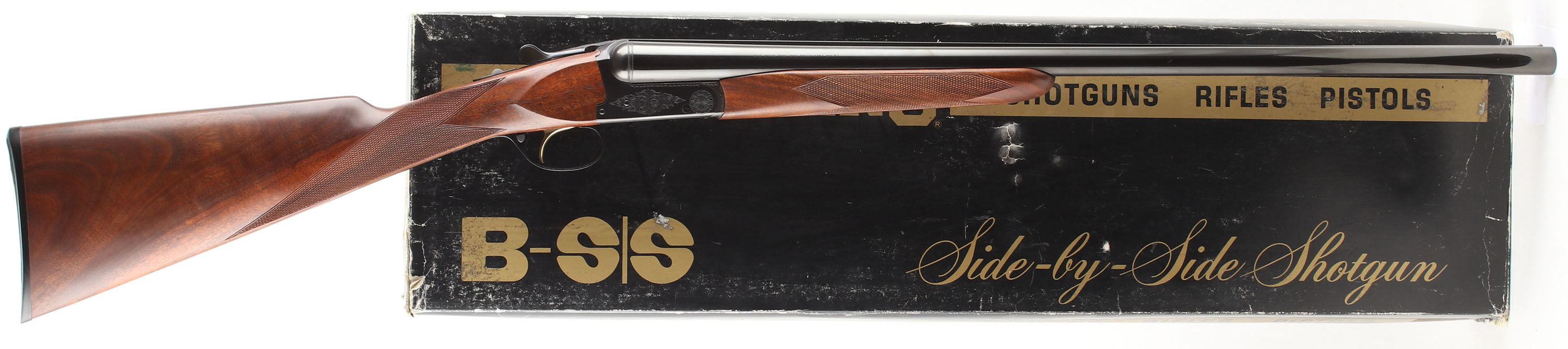 BOXED, Browning (Japan), B-S/S Grade 1 Sporter, CAL: 12GA, MFG: 1982, SN: 04948PY158, Break Action SxS Shotgun, 26'' barrel. The original straight grip wood stocks are excellent. The original finish is excellent. The blued finish rates 99%+ overall. Bores are excellent, near mint. The solid matted rib holds a front bead. Stock has a Browning factory buttplate. Comes in original box, with owners manual. A near NIB example of a B-S/S Sporter. FFL Req. - Value: 1500 to 3000