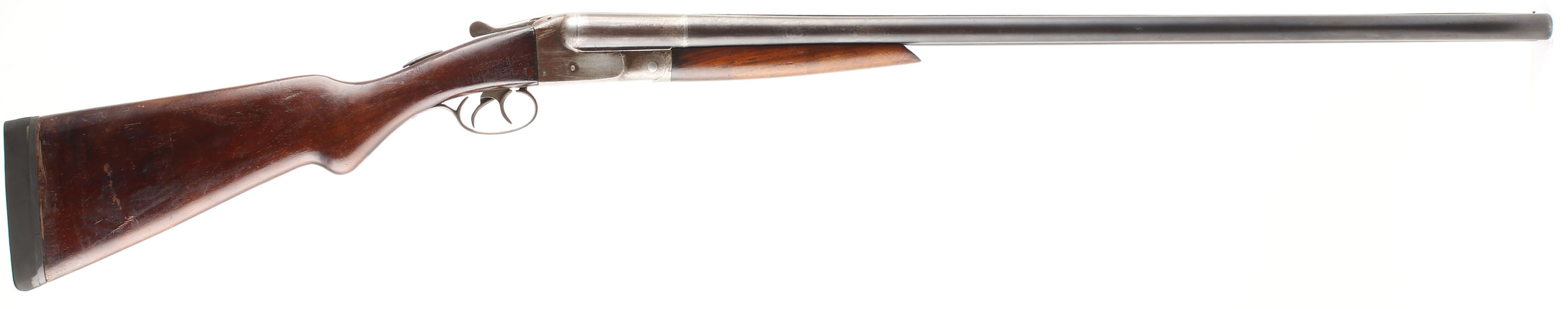 NR Davis & Sons, Model ''AJAX'', CAL: 12GA, MFG: 1900's - 30's, D2070, Break Action SxS, Choke: IC/IM, 30'' barrel. The original round knob wood stocks are good & solid, having been sanded & refinished at one time. There are small hairline cracks, contusions, scratches, scrapes & dings throughout. The blued finish on the barrel rates 60%, & the receiver has fully worn to metal gray with areas toned to a brown patina. Bores are very good, with intermittent roughness. The solid matted rib holds a single front bead. The rib is slightly lifted 2'' from the front bead. Stock has a solid black rubber recoil pad. Double triggers. FFL or C&R Req. - Value: 150 to 300