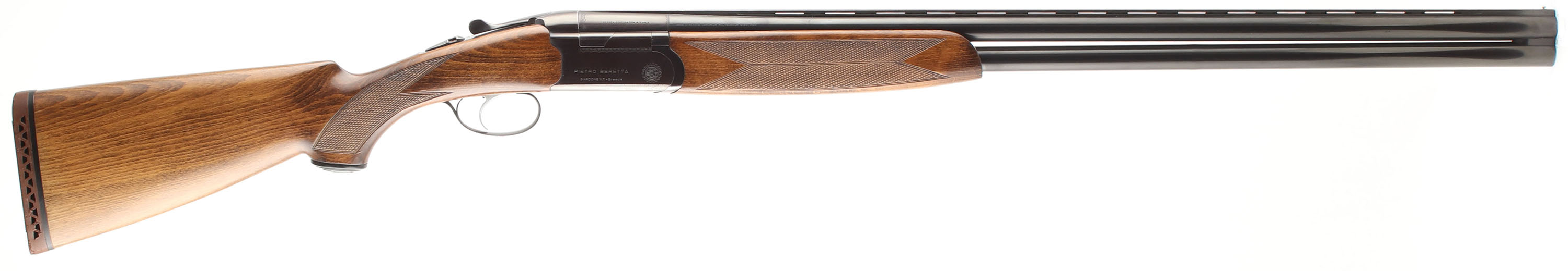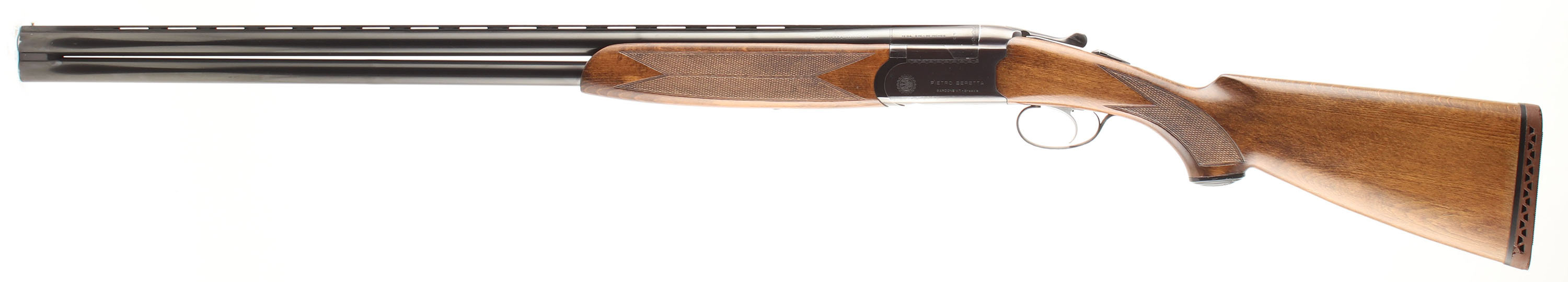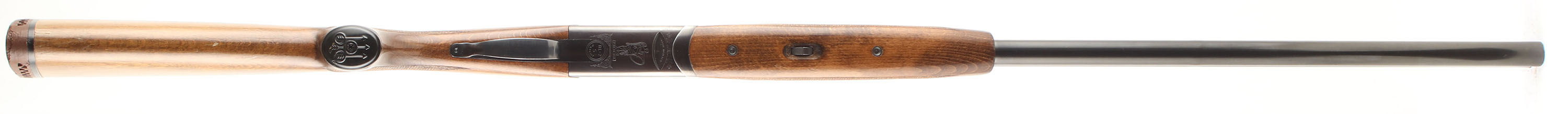 P. Beretta (Imp. by Berben Corp. NY), BL-2/S, CAL: 20GA (marked 12 GA), MFG: 1960's-70's, SN: A77033B, Break Action O/U Shotgun, Choke: IC/CYL (measured), F/M (marked), 30'' barrels. This shotgun has bulges in both barrels & was professionally sleeved to 20GA. The original checkered capped pistol grip stocks are excellent. There are only minor handling marks to the original finish. The original blued finish on the barrel rates 95% with concentrated wear at the muzzle & the receiver rates 85%, with wear around the handling areas. The receiver & chamber end of the barrel has toned plum. Bores are excellent. There are two bulges in the top barrel @ 7'' & 10'' from the chamber & one on the bottom, 11'' from the muzzle. The vent rib holds a front bead. Stock has a Beretta ventilated brown rubber recoil pad. Satin silver single selective trigger. FFL or C&R Req. - Value: 300 to 600