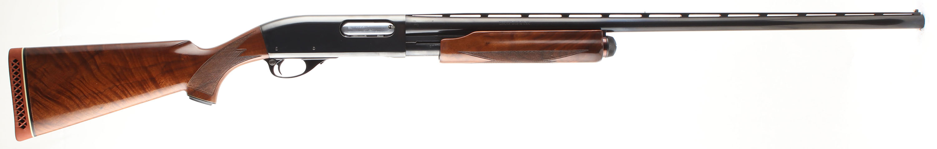 Remington Wingmaster Model 870TC, CAL: 12GA, MFG: 1978/79, SN: T234372V, Pump Action Shotgun, Choke: Full, 2 3/4'' Chamber, 30'' barrel, Ventilated Rib. The original checkered & capped higher grade walnut stocks are excellent. There are virtually no handling marks to the finish. The blued finish on the barrel rates 98% coverage, with thinning toned to a brown patina & the receiver rates 99%. Bore is excellent. The vent rib holds a small silver mid-rib bead & white front bead. Stock has a Remington ventilated recoil pad. FFL Req. - Value: 500 to 900