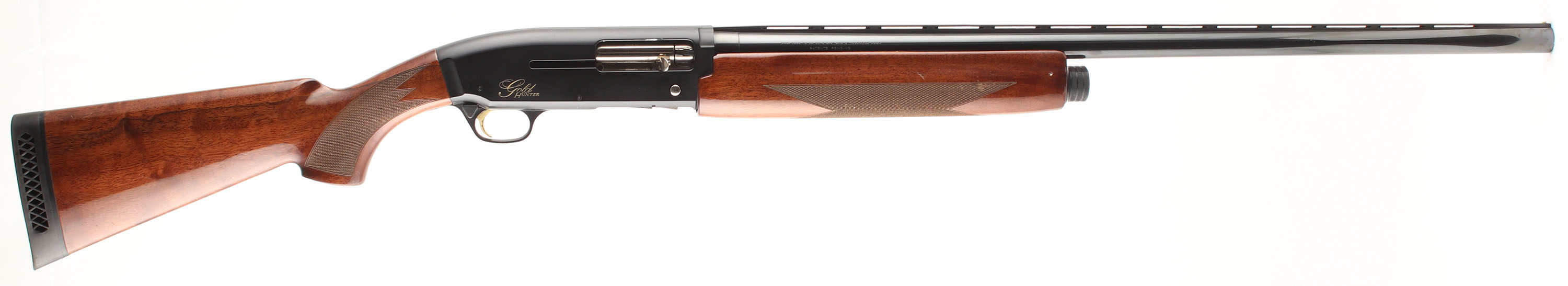 Browning (Belgium), Gold 3'' Hunter, CAL: 12GA, MFG: 1995, SN: F51NV22120, Semi Auto Shotgun, 2 3/4'' & 3'' Invector Chokes (CYL), 28'' vent rib barrel. The original checkered flat pistol grip stocks are excellent. There are scratches, scrapes & dings to the high gloss finish. The original blued finish on the barrel rates 90% & the matte black finish on the receiver rates 90%. Bore is excellent with visible light wear. The ventilated rib holds a white front bead. Stock carries a Browning ventilated black rubber recoil pad. Gold tone trigger. FFL Req. - Value: 400 to 600