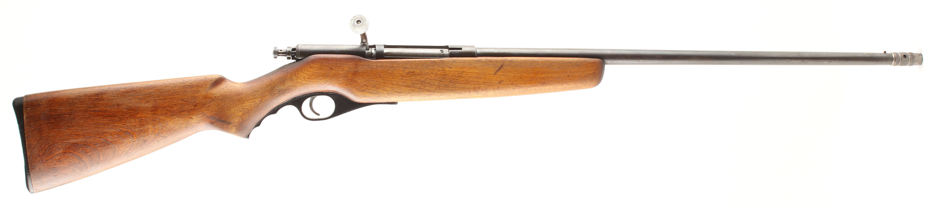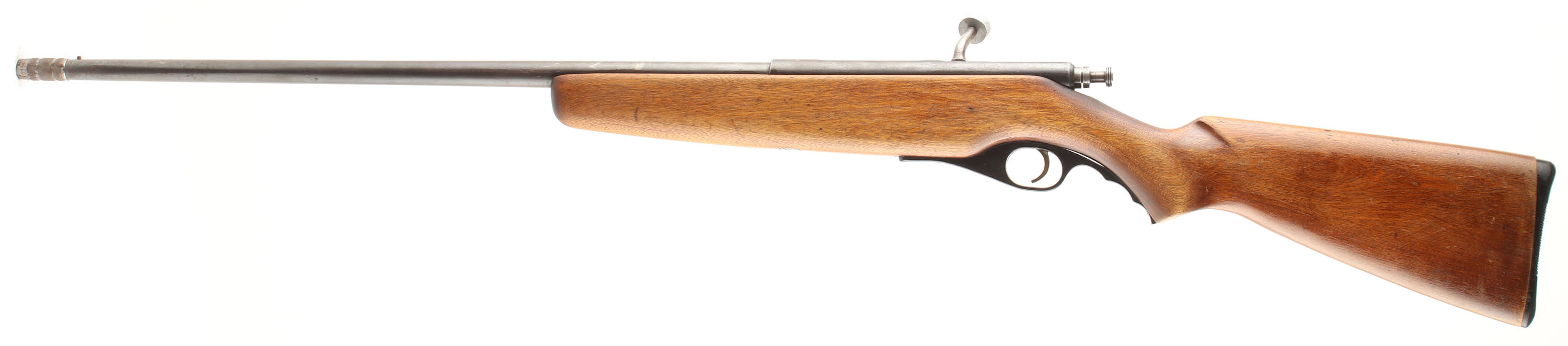 Ward's Western Field, Model 04M 218A, CAL: 410GA, MFG: N/A, SN: NSN, Single Shot Bolt Action Shotgun, 24'' threaded barrel w/choke, 3'' Chamber. The original flat pistol grip wood stock is very good & solid, having been refinished. There are smoothed scrapes, dings & areas of thinning refinish. The metal blue finish has 60% overall coverage, with thinned areas toned to a brown patina. Bore is excellent, with visible striations from use. The barrel holds a single front bead. Grooved plastic buttplate. Bolt handle has been replaced, screw-on portion is loose & wont thread. FFL or C&R Req. - Value: 100 to 200