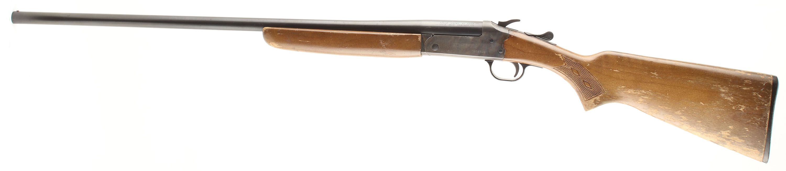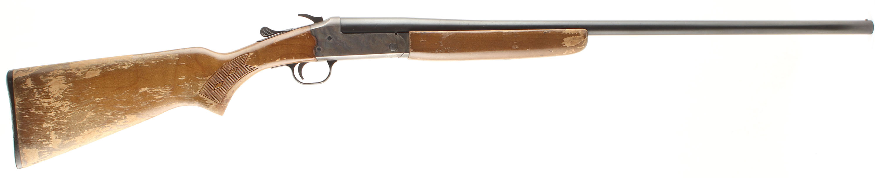 Stevens (Savage), Model 94 Series K, CAL: 20GA, MFG: 1971-73, SN: A982849, Break Action Single Shot Shotgun, IC, 3'', 27 7/8'' barrel. The original, checkered flat pistol grip wood stocks are very good. There are minor contusions, scrapes & dings, with large areas of flaking & thinning finish. Buttstock doesn't fit snug to receiver, small amount of play. The metal blue finish on the barrel rates 85%. The case-hardened receiver is mostly toned to a brown patina, with faint case-colors remaining. Bore is excellent, with visible striations from use. Barrel holds a single front bead. Grooved plastic buttplate. FFL Req. - Value: 100 to 200