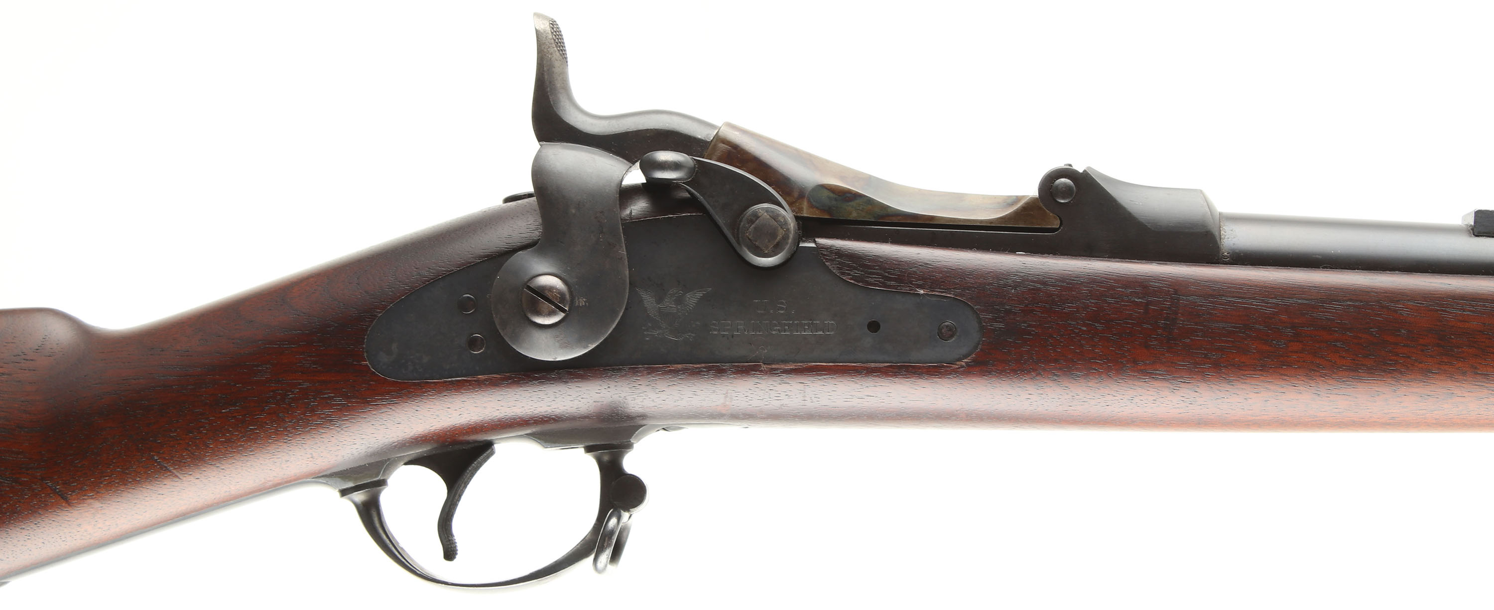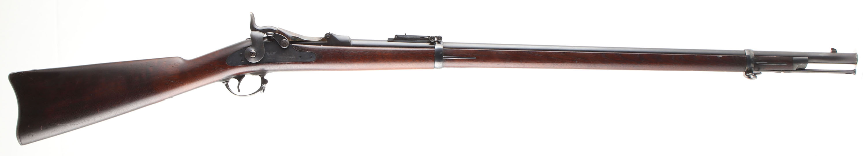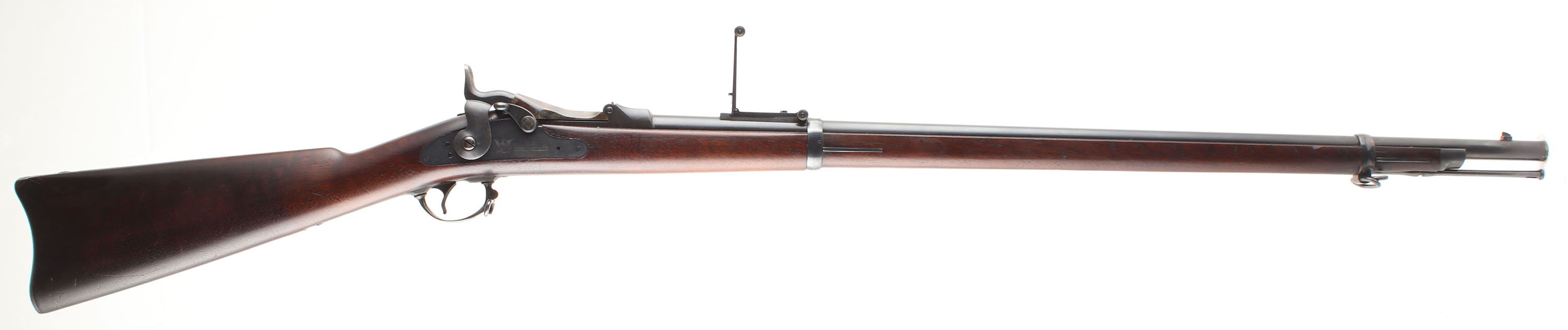HISTORY: The model 1884 introduced the Buffington rear sight to the Trapdoor which was more precise & had windage adjustment. This model also changed the breech-block model marking to 1884. Older rifles were updated to with the new sight when refurbished & some 1884 rifles were made from left over 1873 marked breech blocks.