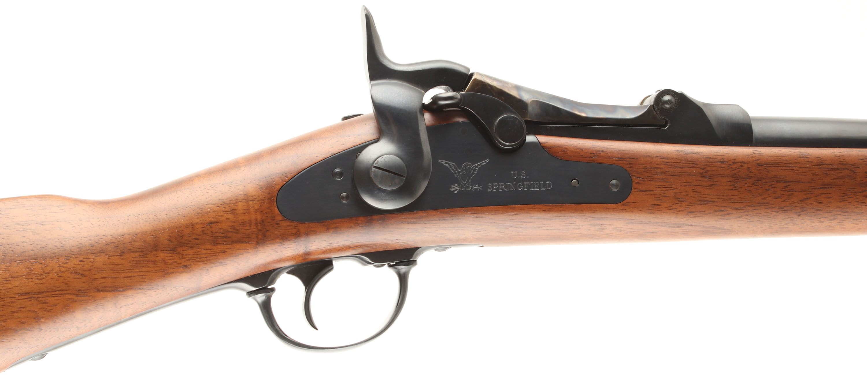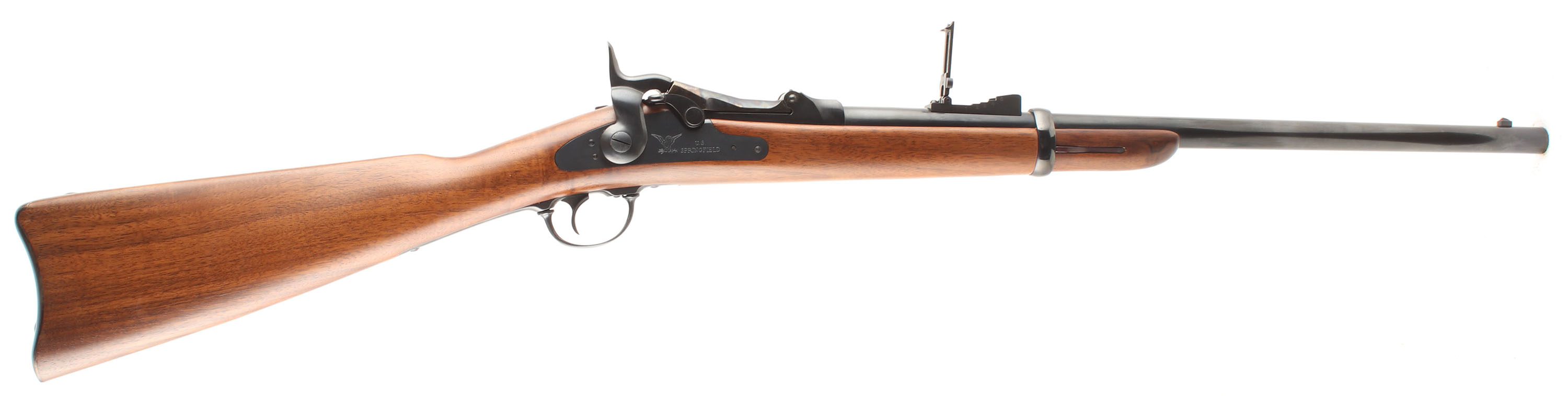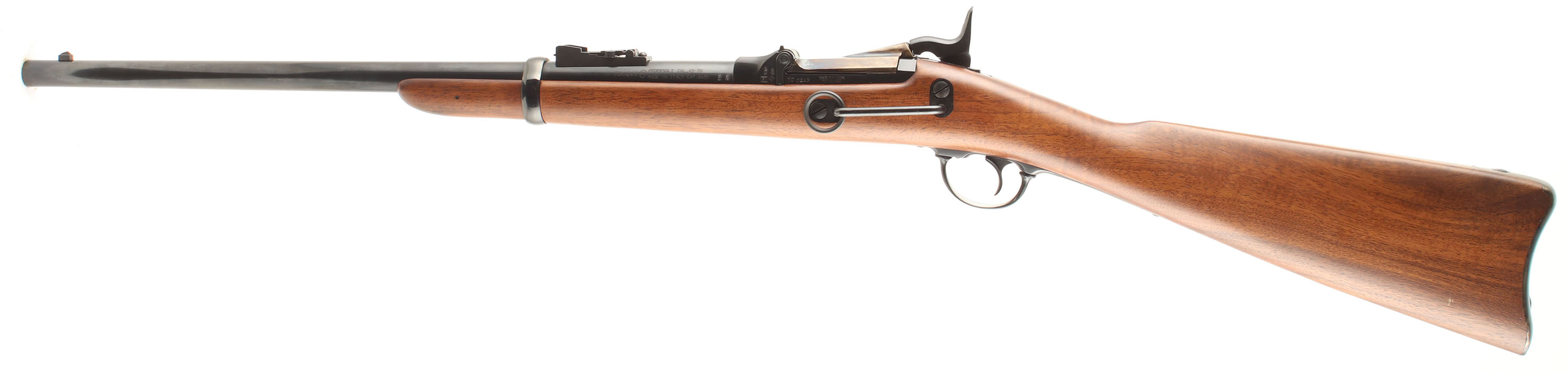 HISTORY: Modern Italian reproduction of the American classic Trapdoor Springfield. While these are made from far better modern steel, the action's locking design is weak when compared to modern smokeless loads & ammo fired should not exceed 18,000 CUP pressure limits like the originals. Some modern 45-70 ammo is loaded to this pressure while some hunting loads exceeded it so proceed with caution.