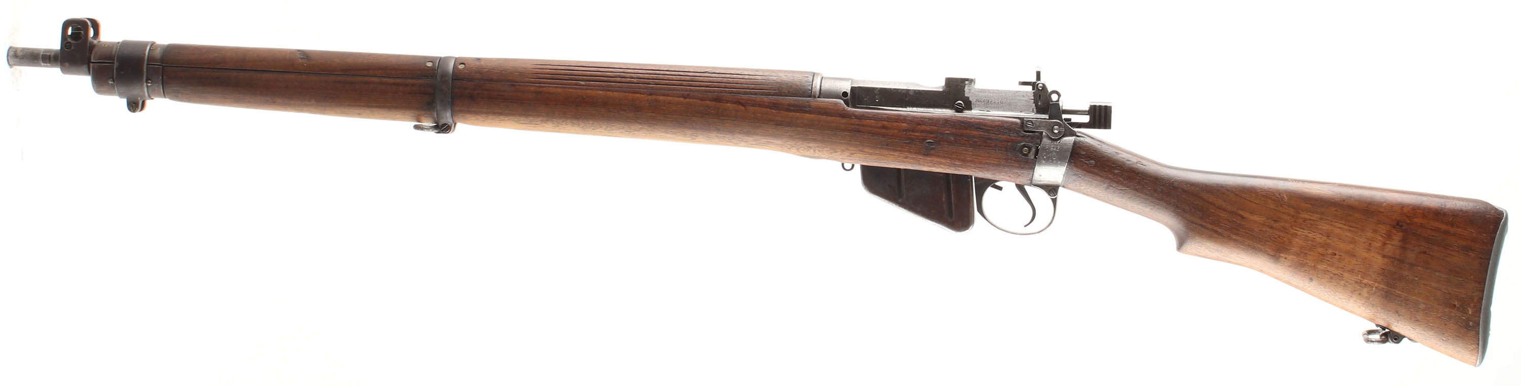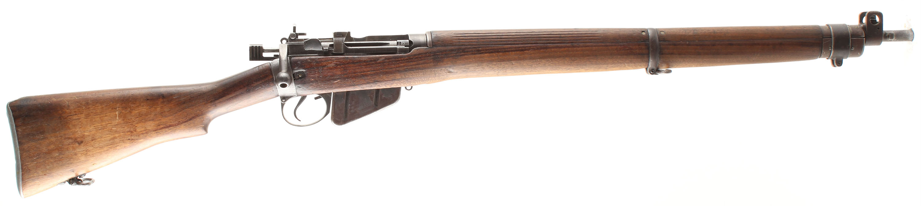 HISOTRY: The No.4 Mk.1 would start development in the early 1930's with the need for more streamlined & accurate rifle. It featured a heavier barrel in proving accuracy, a receiver mounted aperture sight taken from their testing with the P13/14 Enfield rifles, the aperture sight was easier to use in a battlefield setting & the longer sight radius further improves accuracy. The receiver shape was changed to be faster to produce & was actually stronger than the earlier design. It also switch many of the smaller parts to being stamped, further improving manufacture time & cost. Only around 2,500 trials rifles would be made through the 30's until mas production started mid 1941.