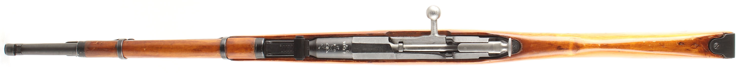 CONDITION: The straight wrist arctic birch stock is very good as being lightly sanded & re-finished with a high gloss lacquer. Stock has some scuffs & scratches to the finish showing the exposed wood underneath. The stock has two arsenal repairs, one small wood fill on the bottom just in front of the magazine, as well as a toe repair/replacement. There are many worn cartouches dotted around the stock but most notably a Diamond refurbishment mark on the comb, & a diagonal line in square refurbishment mark on the right cheek. The metal carries multiple arsenal re-finish's roughness under the finish, & leaving some markings thinned or faded (some are just poorly struck as well). As well as a post import re-blue with the import markings being thinned & blued over. The blued metal finish rates 95% overall with light thinning & light wear on edge. The barrel shank is marked with a Tula star with straight line square refurb mark inside, over ''1944'', over ''NO'', over the S/N, over two more diagonal line in square refurb marks. The top of the receiver has faded import stampings. More small markings on barrel bands & rear of the receiver tang. S/N matching bolt, magazine floor plate, & buttplate. all were scrubbed & force matched with the floor plate having the old number lined out. The bore is good. beginning to darken, proud rifling with light roughness throughout the bore. Has been counter bored. The barrel holds a post front sight with protective globe. The rear sight is a tangent U-notch marked 1 to 10. The stock carries a blued steel buttplate. has roughness under the finish & light finish wear on edges. The stock has both factory sling wells. Rifle has a cleaning rod & comes with a modern green canvas sling with leather dog collars. Mechanical function appears solid. A unique hex receiver M38 with lots of interesting refurbishment markings showing this rifle was well used. FFL or C&R Req - Value: 350 to 700