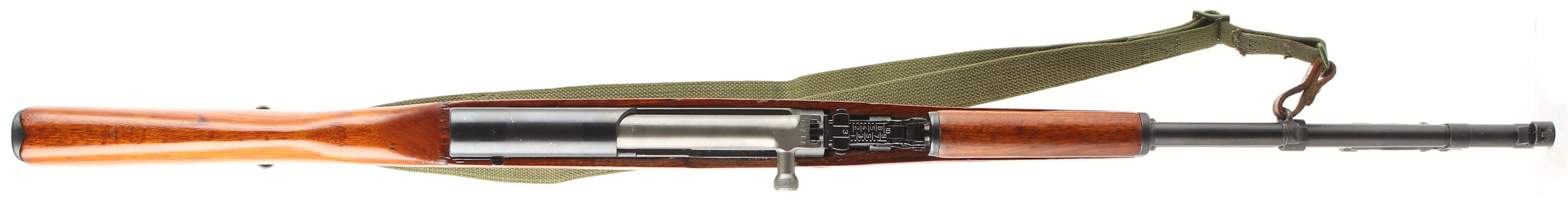 CONDITION: The semi-pistol grip wood stock is excellent with a factory high gloss lacquer but has a couple small scuffs on the edges & some superficial scratches. Left cheek of stock marked with last five digits of the S/N, & The top of the comb is stamped ''82'' in a circle. Left flat of the stock above the mag has a small triangle stamp. The blue metal finish rates 95% overall with small scratches & wear spots on the barrel & the receiver. Left side of the receiver is marked ''636'' in a triangle, ''TYPE 56 CARBINE'' in Chinese, & the S/N. bottom of the barrel, just in front of the forend is marked with import stampings. S/N matching magazine, trigger guard, receiver cover, bolt, bolt carrier, & gas tube (gas tube is electro penciled which is factory). The bore is excellent. It's bright & mirrorlike with little to no visible wear. Chrome lined bore. The barrel holds a post front sight with protective globe, Tangent U-notch rear sight with a ''3'' battle zero mark & 1 to 10 marks. The blue steel trapdoor buttplate has a cleaning kit inside. Rifle has the affixed folding cruciform bayonet & the cleaning rod. Rifle has both factory sling loops & comes with a period correct green canvas sling. Mechanical function appears solid. FFL or C&R Req. - Value: 450 to 850