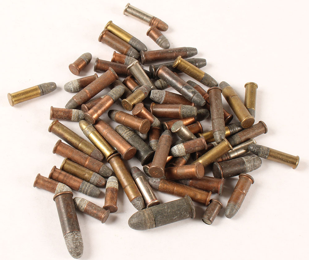 Large lot of Rimfire Ammunition. Mostly .22 caliber of various lengths, makers and loadings. Other calibers include: (1) .38 Short, (3) Winchester Auto, (1) .32 Long, (2) 32 Shorts, See Photo. Grade Very Good but some are dirty. - Value: 10 to 20