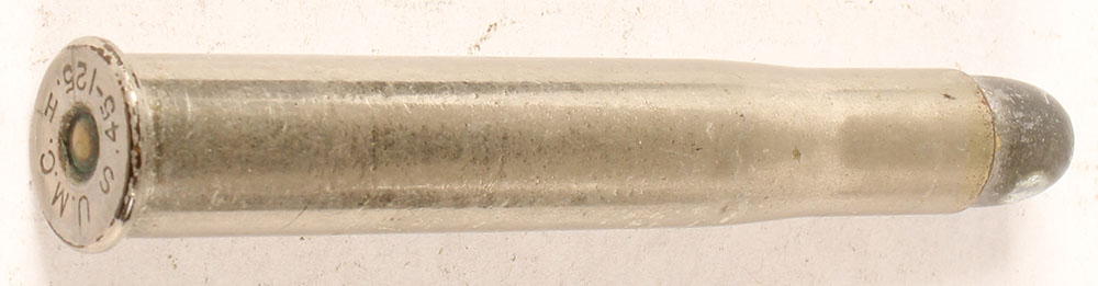 45-125 Winchester Express. HS:''U.M.C. H 45-125 S'', FN Lead, Nickel Case. Grade Very Good ++ - Value: 50 to 100