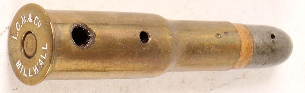577/450 Martini Henry. HS:''L.C.M.&C0. MILLWALL'', RN PP Lead. Two non-factory holes in case. Grade Very Good ++ - Value: 20 to 40