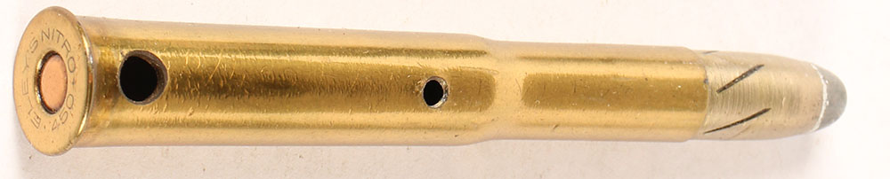 450/400 x 3.25'' HS:''.ELEY'S NITRO 450.'', RN CN SP, Fraser's Ratchet Slits. Has two non-factory holes in case. Grade Very Good. ++ - Value: 20 to 40