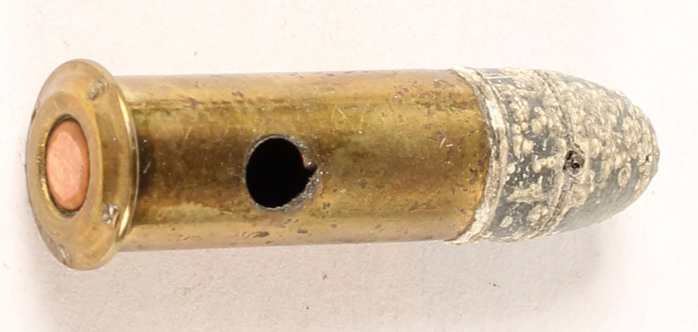7.6mm Mauser Revolver. HS:''DWM K 5 K'', RN Lead. One non-factory holes in case. Grade Very Good ++ - Value: 20 to 40