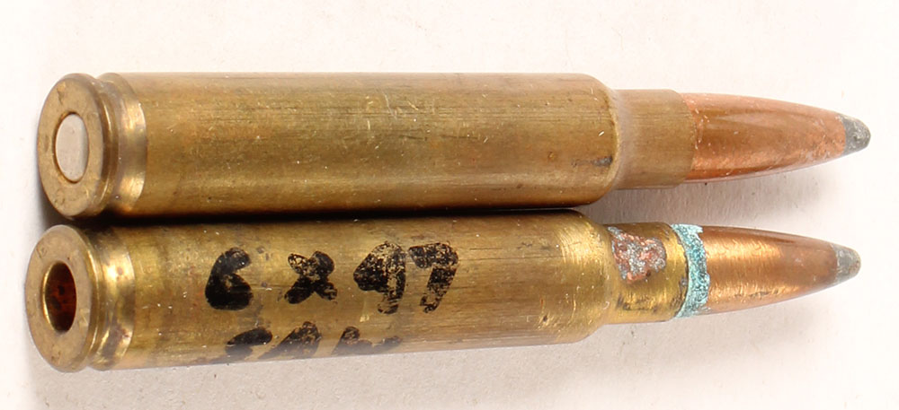 Lot of 2 6mm Brunswick Experimental for proposed SAW, C 1973, H/S: WCC 73, one is a dummy with no primer. Grade: Good - Value: 20 to 40