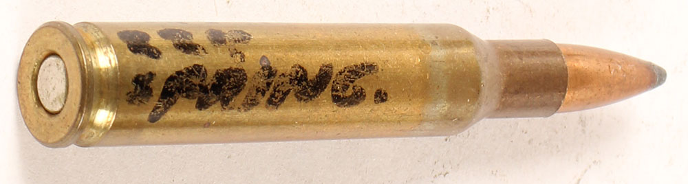 .22 Experimental 46.7 am case lg., no H/S, SP Bullet, made by Remington for trial at Springfield Armory, Adated as .222 Rem Mag. Grade: Excellent ++ - Value: 16 to 30
