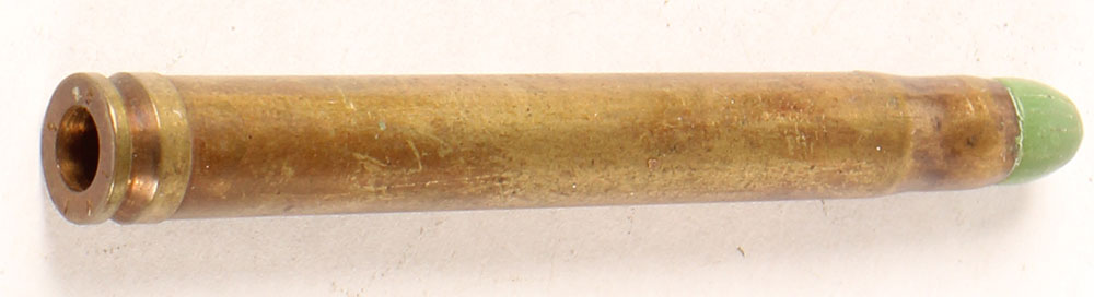 5.77mm Flechette XM645. Dummy. HS:''IVI 71'', belted brass case, piston primer, green fiber sabot. NO primer. See HWS III, pg 326. Grade: Very Good + - Value: 20 to 40