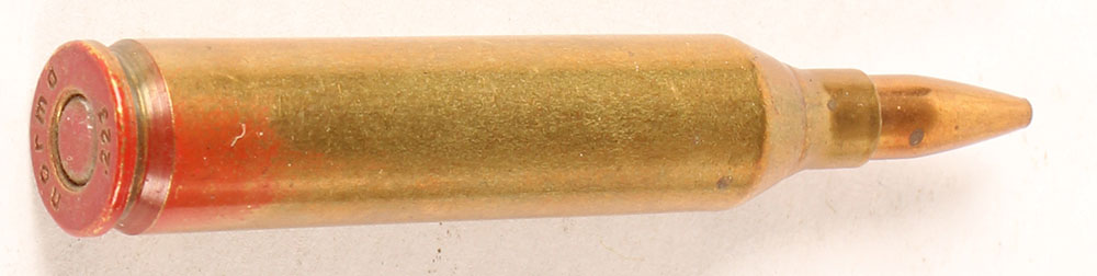 H/R loading, .17 Cal proof loadings, H/S: Norma .223, case base is painted red, .44 mm case lg. Grade: Excellent ++ - Value: 20 to 40