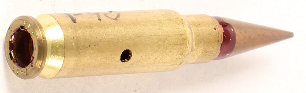 RARE 5.7x28, 4 hole dummy with wood rod, no primer, made for demenstration, ONLY 30 MADE! Grade: Excellent ++ - Value: 20 to 60