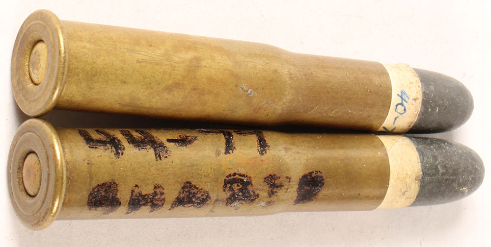 Lot of 2, Sharps & Remington cartridges. (1) 40-70 Sharps & Remington (2.25'' case), NHS, RN PP Lead. (1) 44-77 Sharps & Remington (2.25'' case), NHS, RN PP Lead. Grade Very Good - Value: 16 to 60