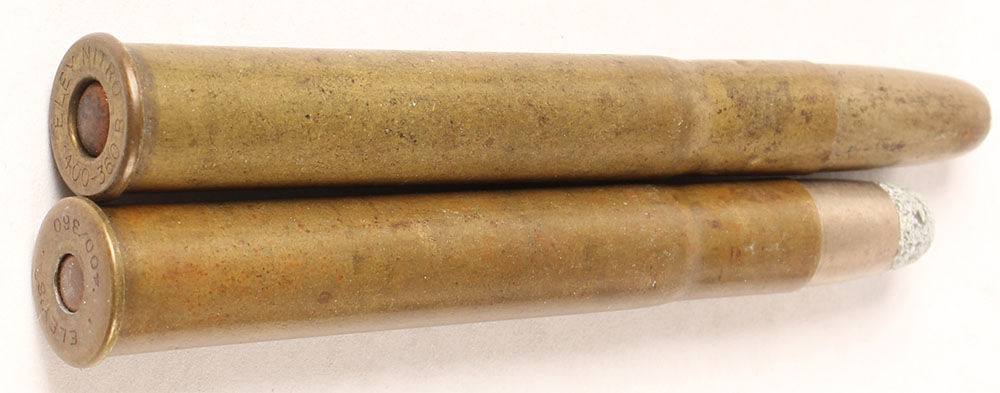 Lot of 2, .400/360 Nitro Express. (1) HS:ELEY'S 400/360'', RN CN SP. (1) HS:''ELEY NITRO 400-360 B'', RN CN SP. Grade Very Good - Value: 20 to 40