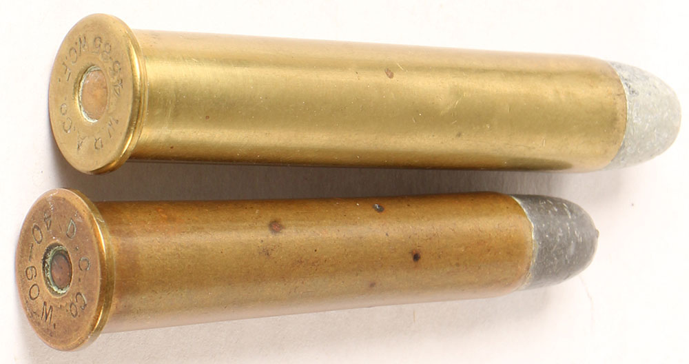 Lot of 3, American Sporting Cartridges. (1) 40-60 Marlin, HS:''D.C.Co. 40-60 M.'', FN Lead. (1) 45-85 WCF, HS:''W.R.A.Co. 45-85 W.C.F.'', FN Lead. Grade Very Good - Value: 20 to 40