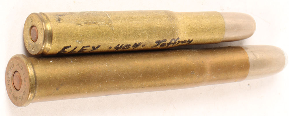 Lot of 2. British Sporting Cartridges. (1) .475 #2 Nitro. HS:''.475 No 2 NITRO ELEY'', RN CN SP. (1) .404 Nitro, HS:''ELEY 404'', RN CN SP. Grade Very Good - Value: 20 to 40