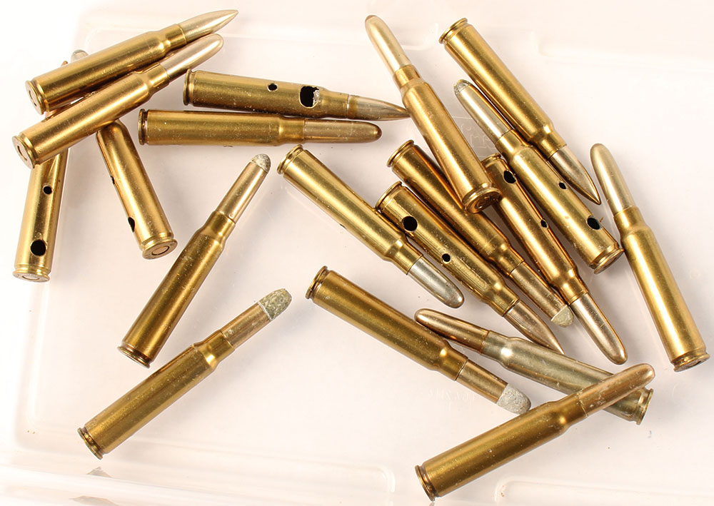Lot of 19, 7.65x53mm Mauser. A mixed lot of military and commercial cartridges, all different . Manufacturers from Britian, Czechoslovakia, Turkey and the US. All have two non-factory holes in cases. Grade Very Good - Value: 10 to 20