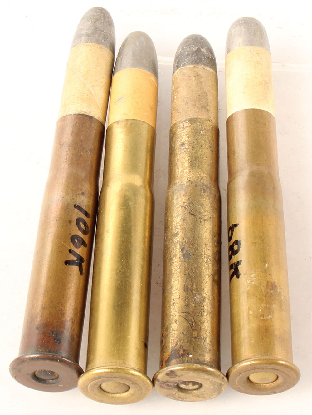 Lot of 4 44-90 Sharps Necked 2 5/8'', LDFN, LDRN, one is a dummy. Grade: Excellent - Value: 80 to 150