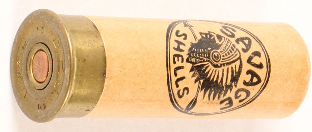 | SAVAGE No. 12 loaded shot shell, crimped TW. Grade: Excellent ...